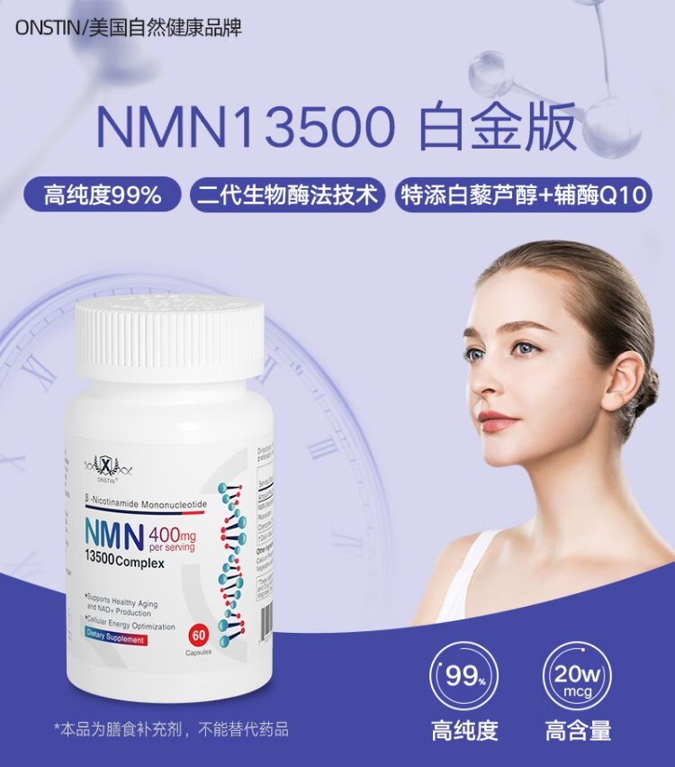 ONSTIN NMN13500 Platinum Edition Nicotinamide Mononucleotide Gene NAD+ Supplement High Content Capsules 60 capsules * 3 bottles imported from the United States