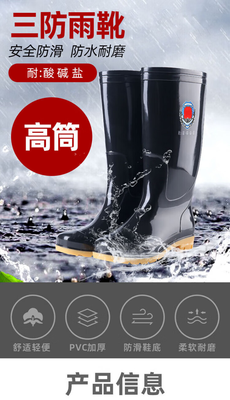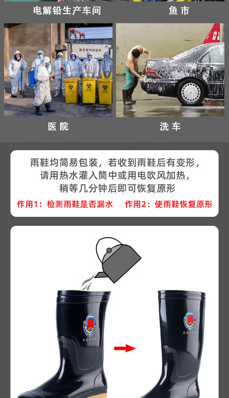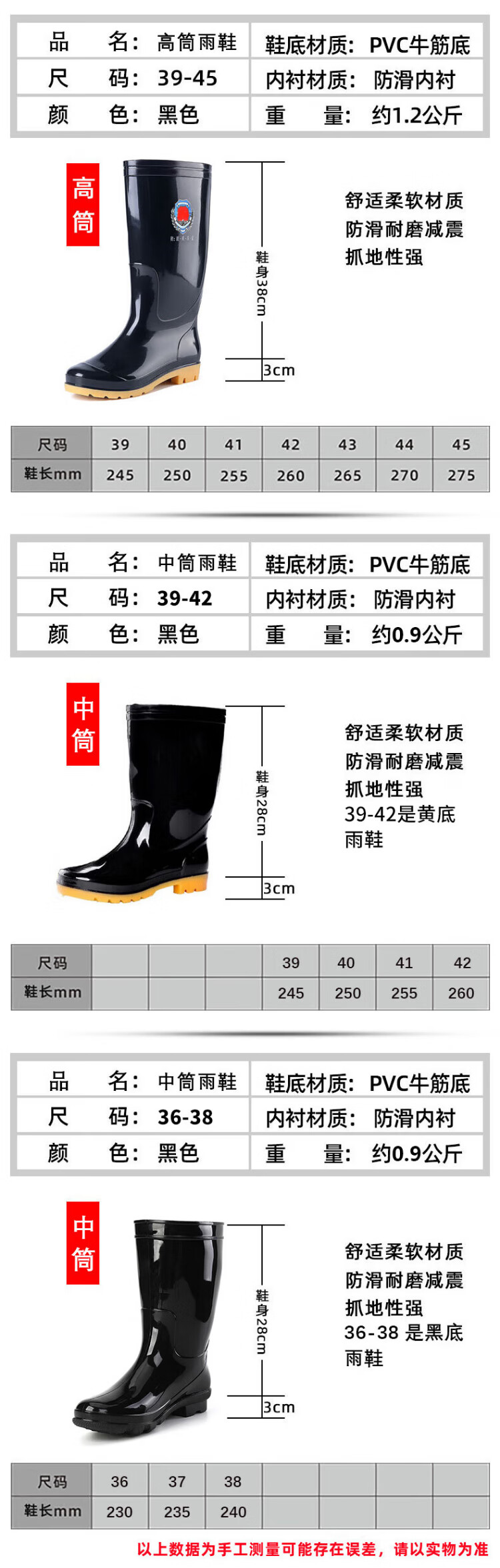 Pinzhide high-top rain boots, wear-resistant water boots for outdoor rainy days, not easy to slip rain boots, weak acid and alkali resistant waterproof rubber shoes, black high-top water shoes 38