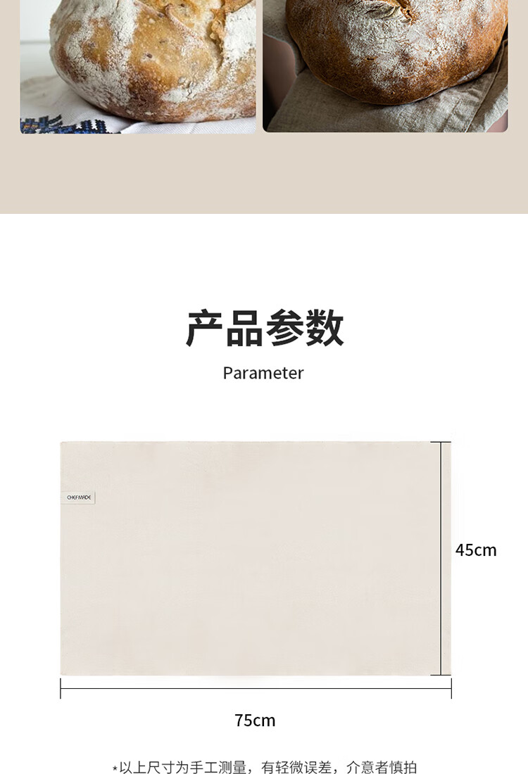 Xuechu Dough fermentation cloth, steamed buns, baguette fermentation mat, European bread yeast moisturizing cotton cloth, anti-stick French pastry baguette dough mat 75*45cm baking tools WK9866