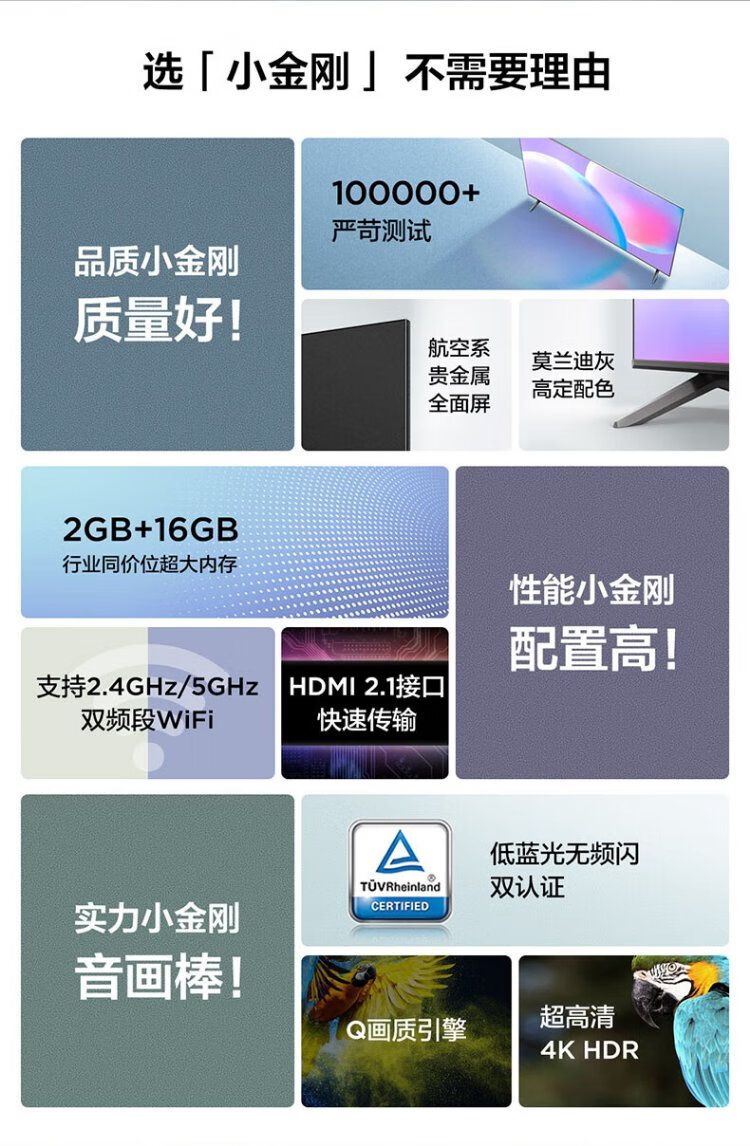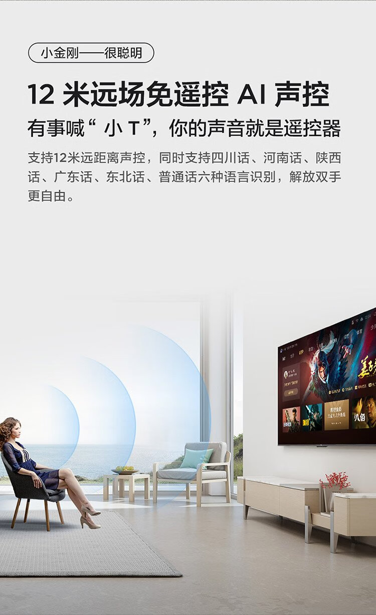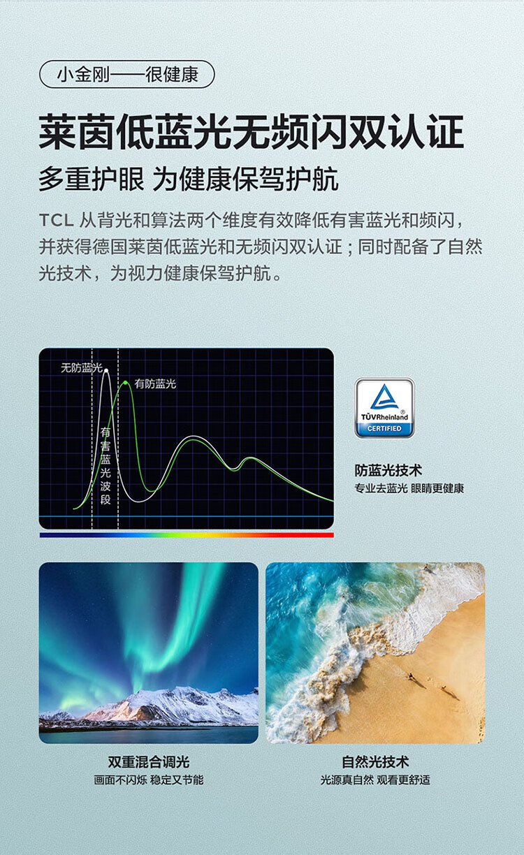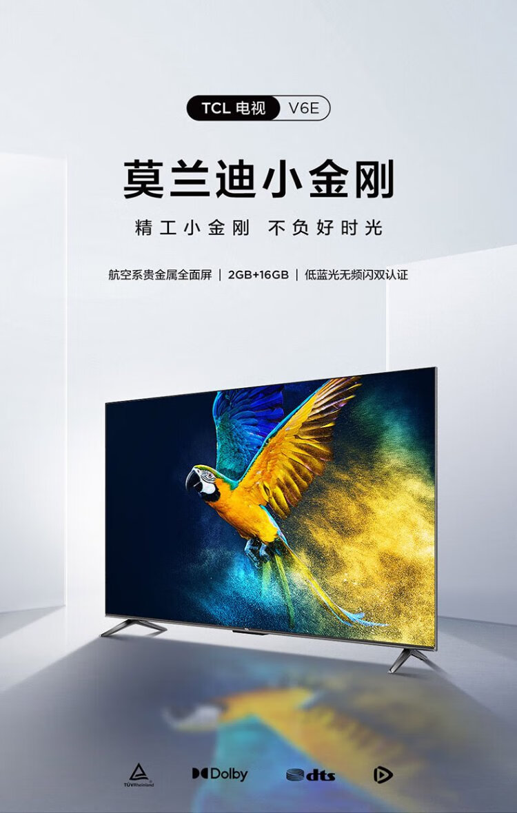 TCL TV 65V6E 65-inch 4K ultra-clear eye protection and anti-blue light ultra-thin metal full screen 2+16GB far-field voice LCD smart flat-panel TV