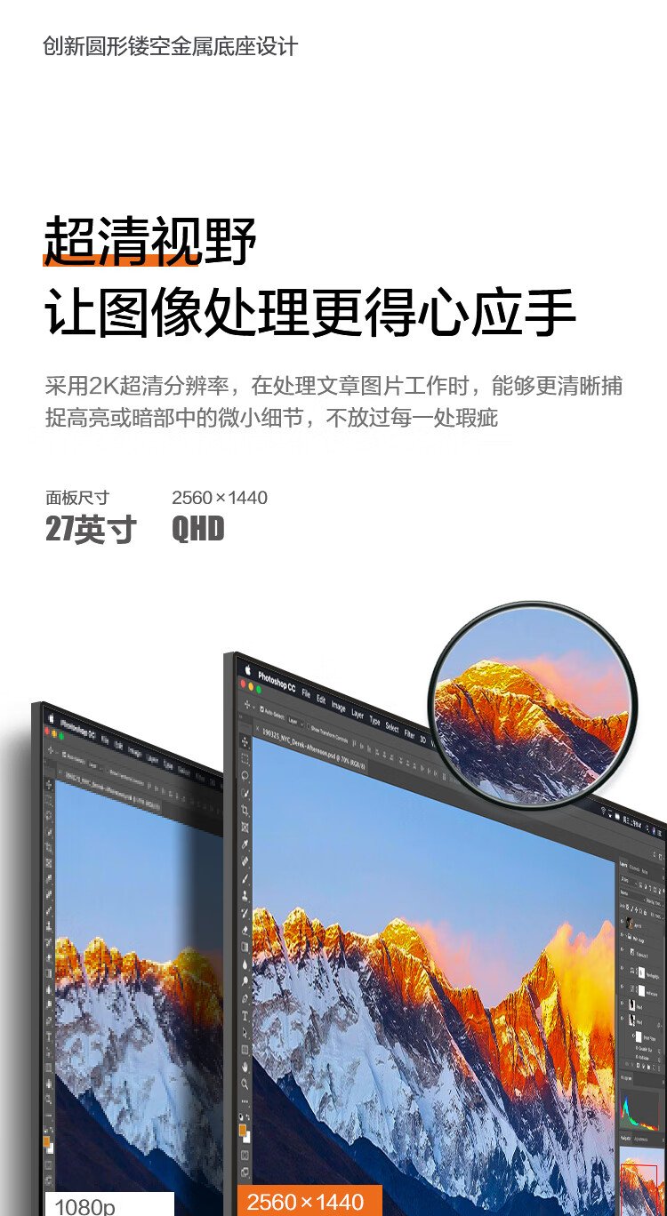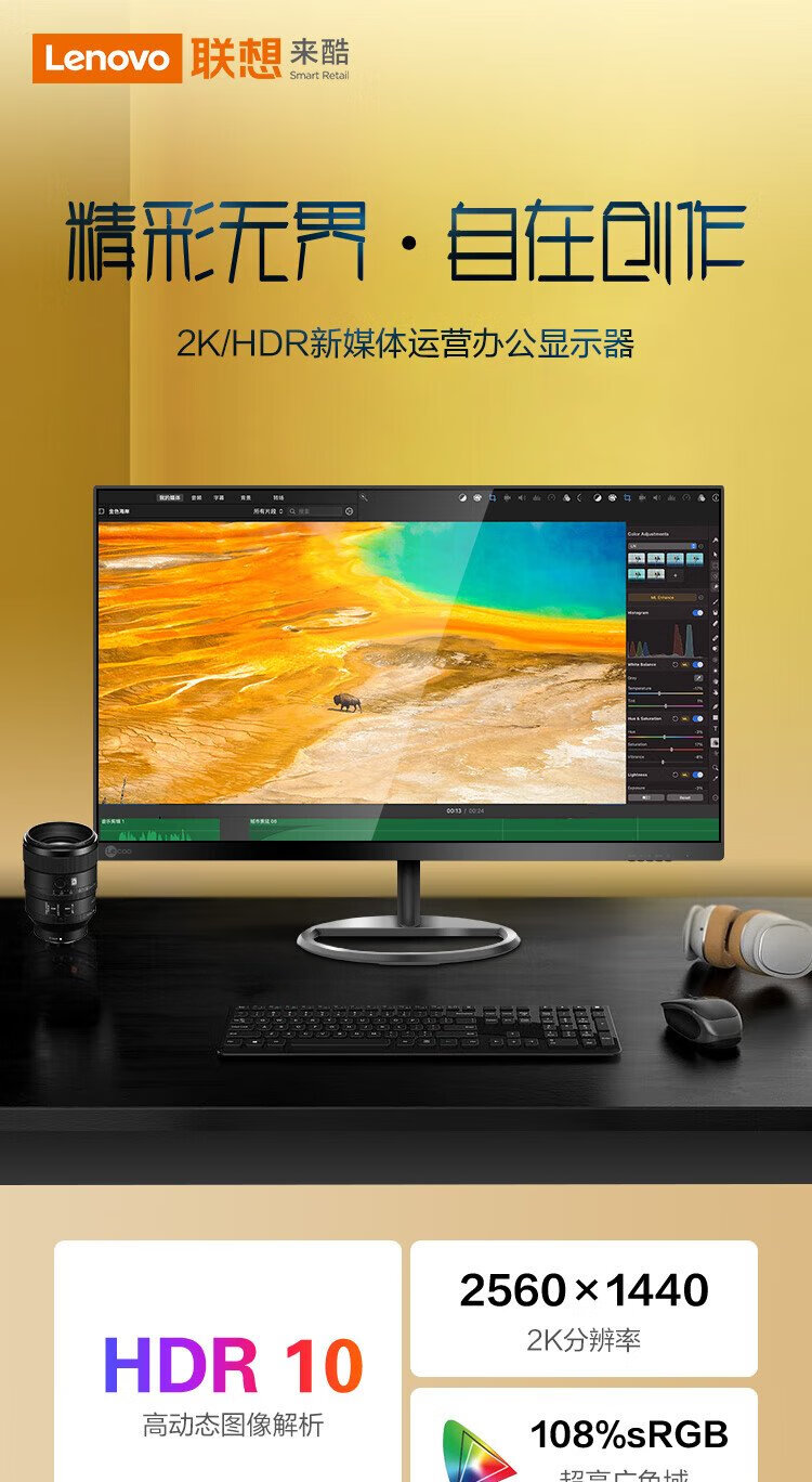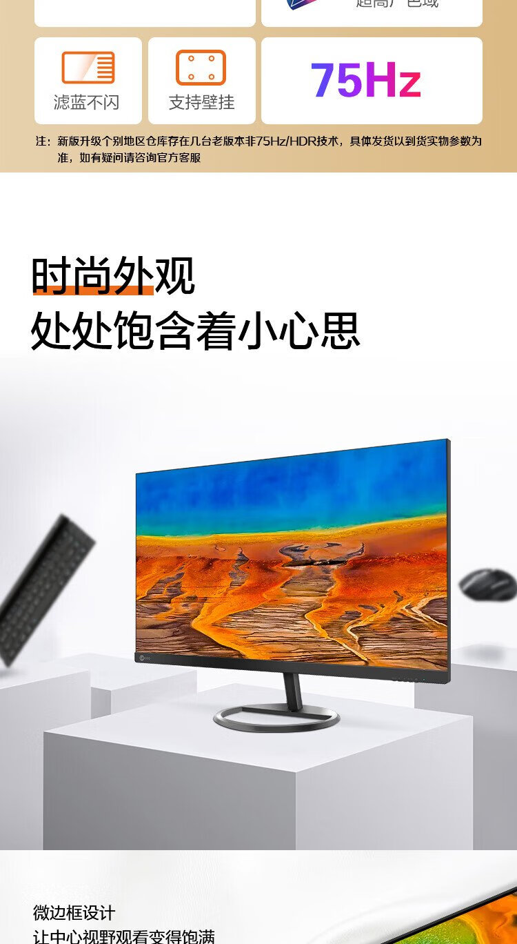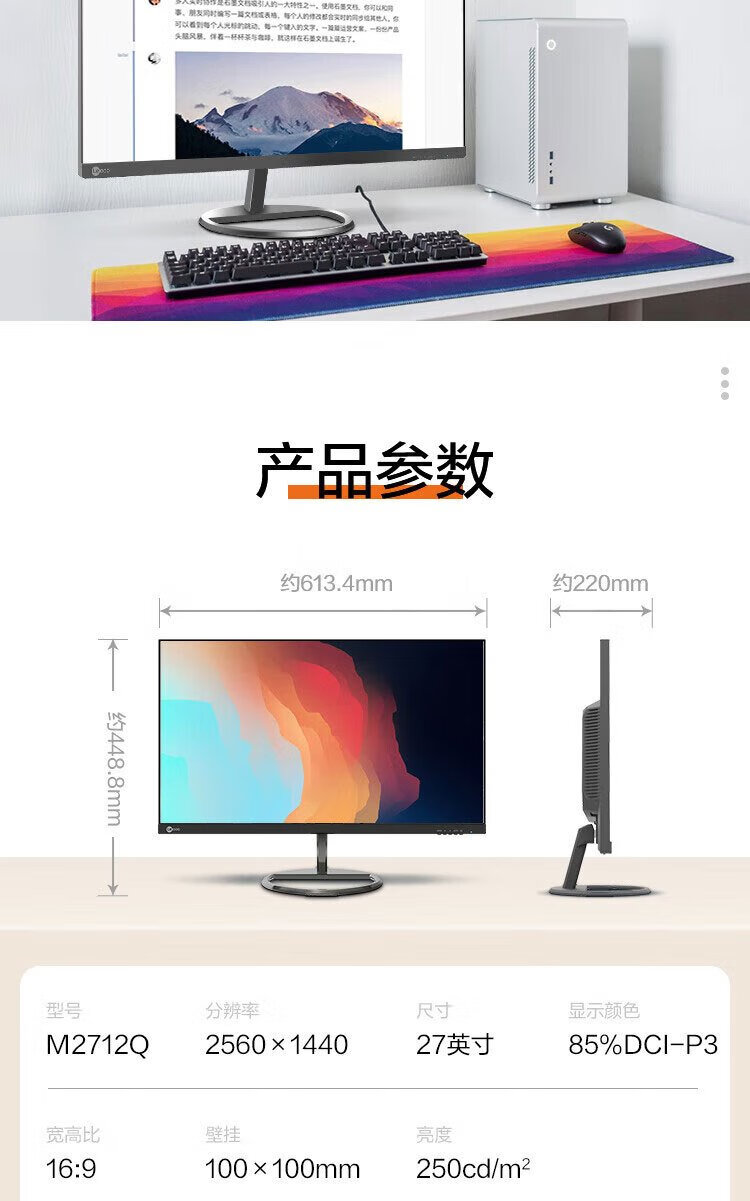 Lecoo Lecoo Lecoo 27-inch IPS screen 2K75Hz HDR10 108%s wide color gamut low blue light quick-release wall-mounted home office computer monitor M2712Q