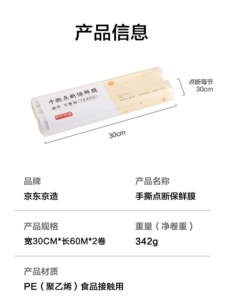 Made in JD.com, plastic wrap food grade, dot-break large size, high temperature resistance [120 meters 30cm]