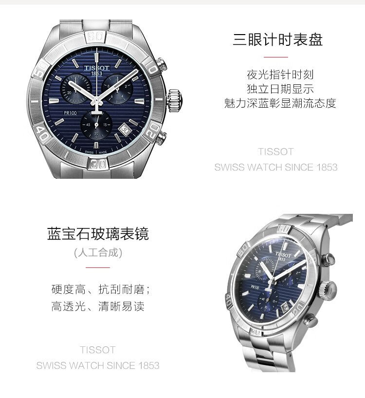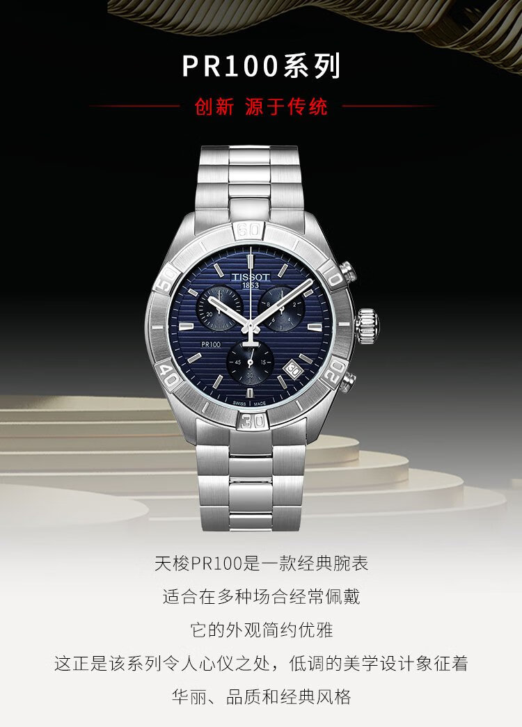 Tissot (TISSOT) watch PR100 series men's watch Swiss quartz men's steel belt watch business watch birthday gift