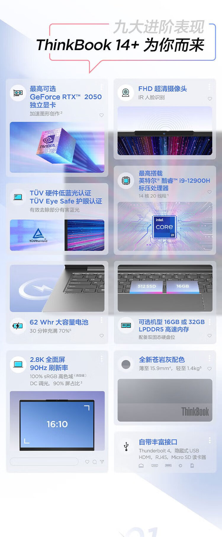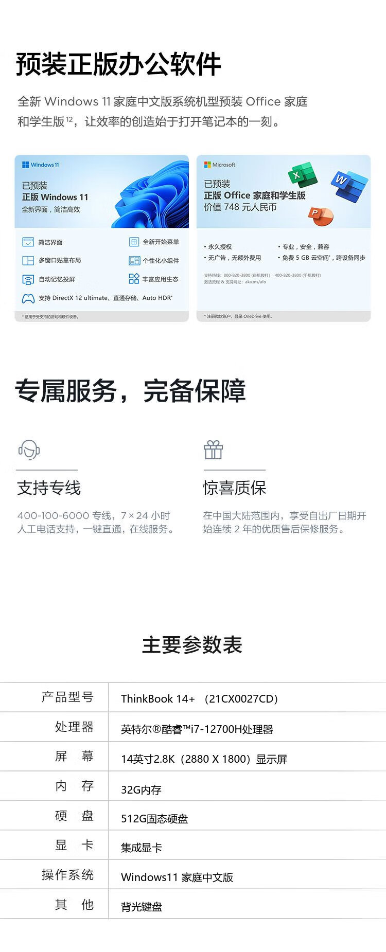 80% new Lenovo ThinkBook 14+ laptop brand new 2022 model Intel Core i7 14-inch standard pressure thin and light notebook i7-12700H 32G 512G 2.8K