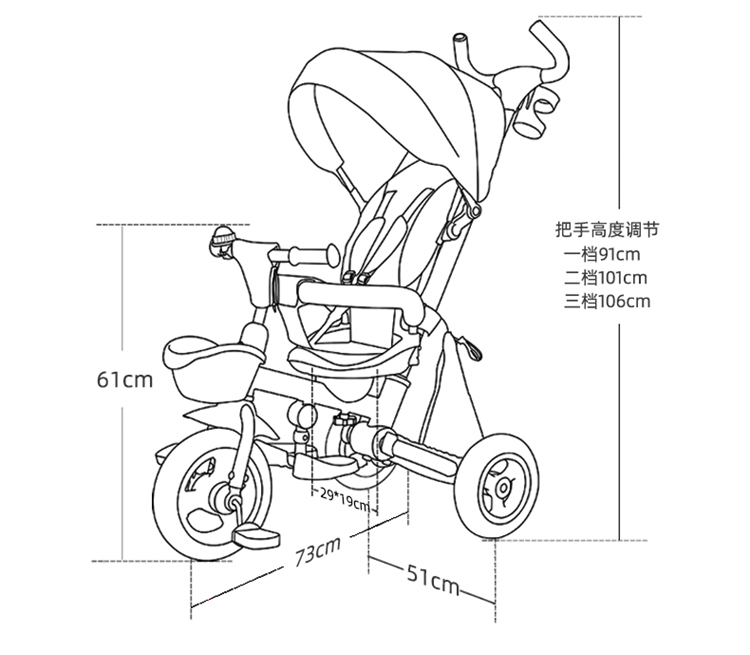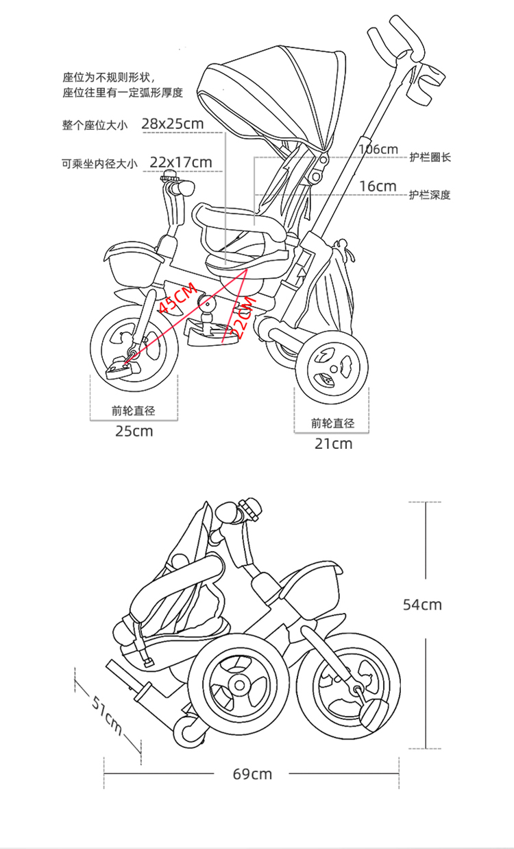 BABYJOEY British children's tricycle folding baby 1-5 years old stroller bicycle rider TT56 black