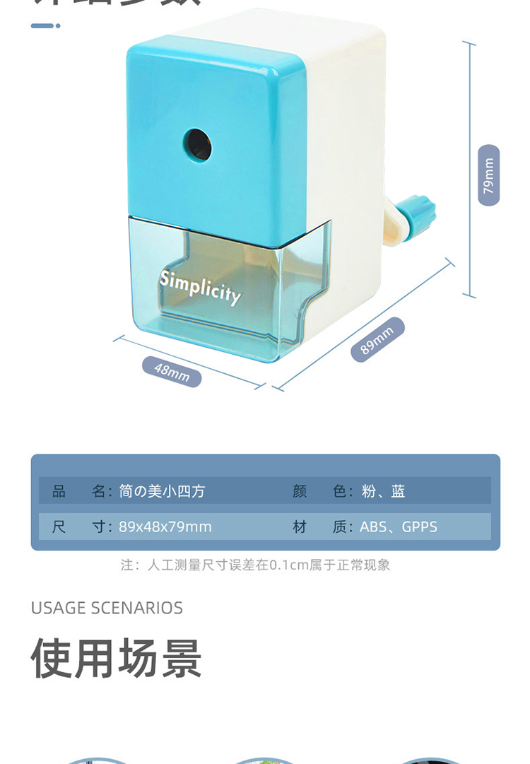 Yuhe automatic pencil sharpener Morandi color pencil sharpener office study supplies hand-cranked pencil sharpener 6167 blue