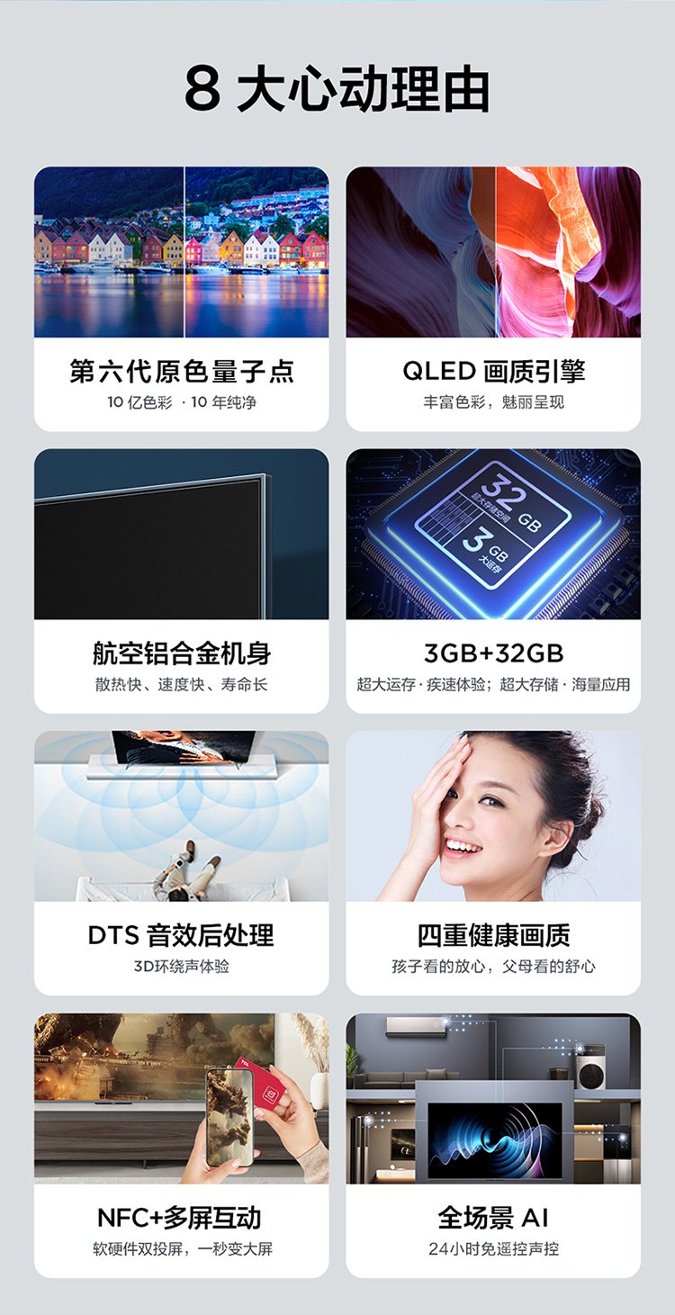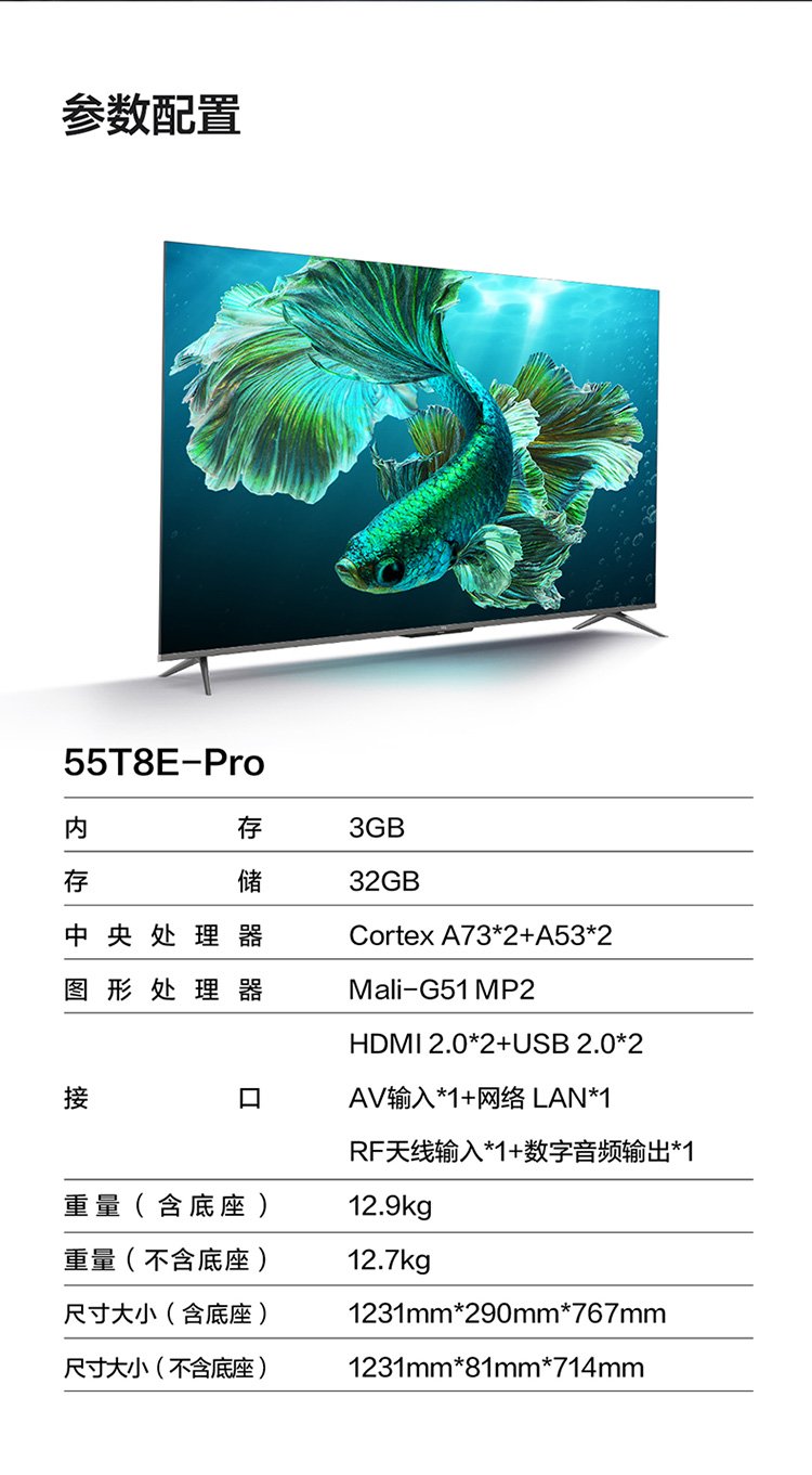 TCL TV 55T8E-PRO 55-inch QLED primary color quantum dot TV 4K ultra-high definition ultra-thin metal full screen 3+32GB LCD smart Jingdong Xiaojia flat-screen TV
