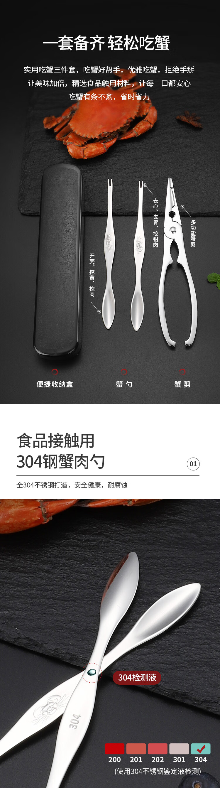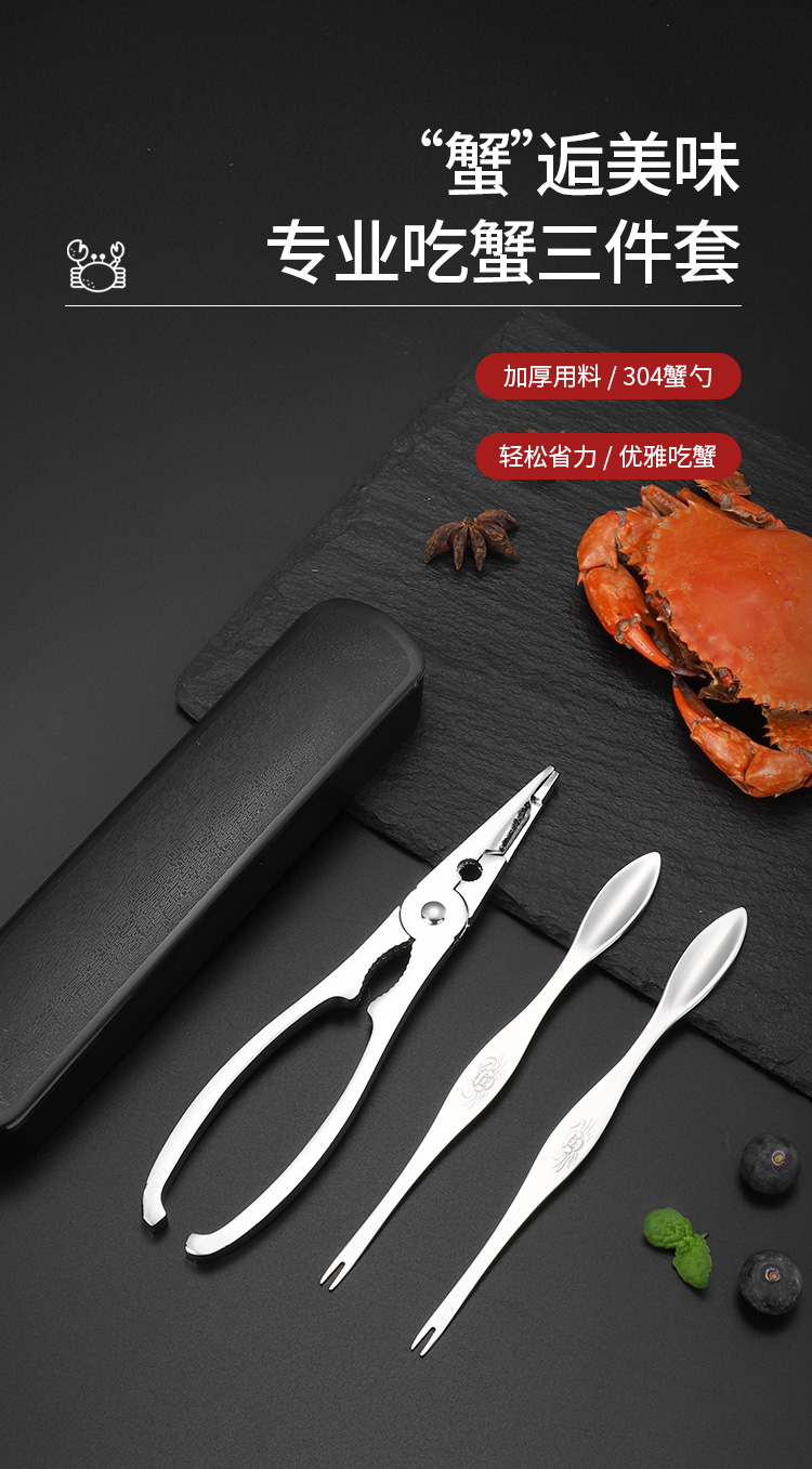MAXCOOK Crab Eating Tool Set Crab Tools Hairy Crab Stainless Steel Crab Peeling Claws Crab Knife 3-piece Set MCPJ6173