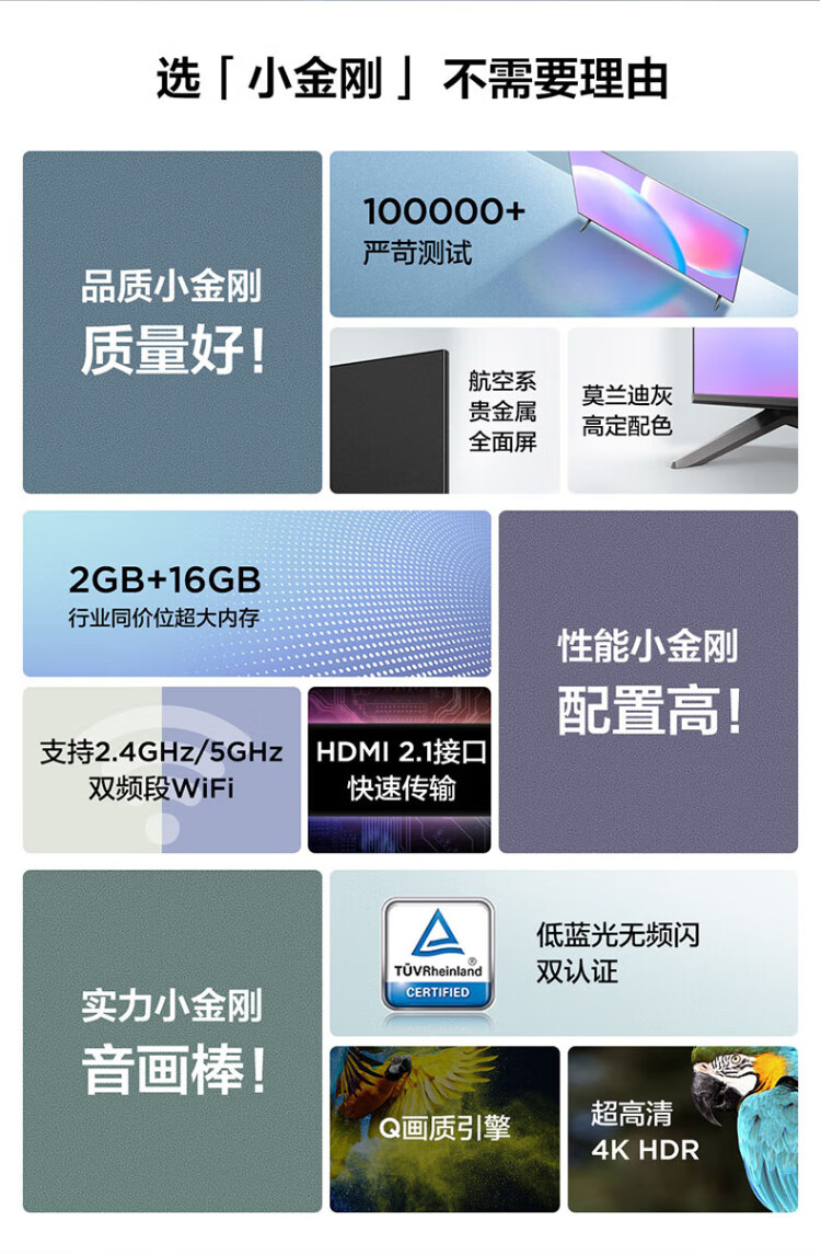 TCL TV 55V6E 55-inch metal full screen 2+16GB low blue light eye protection dual-band WiFi 4K ultra-high definition living room LCD smart flat-screen TV