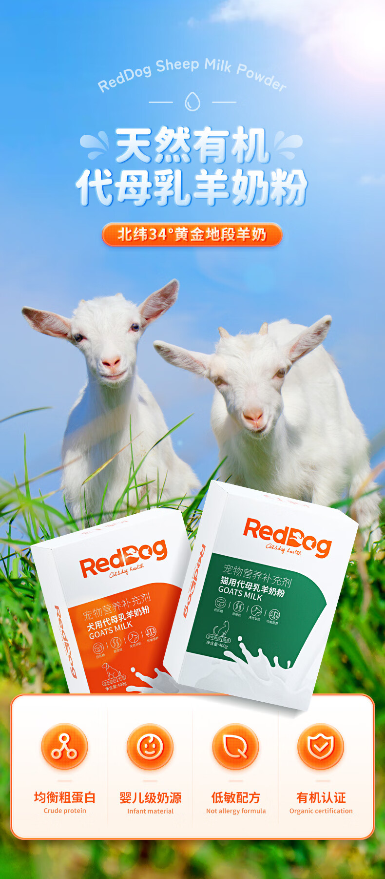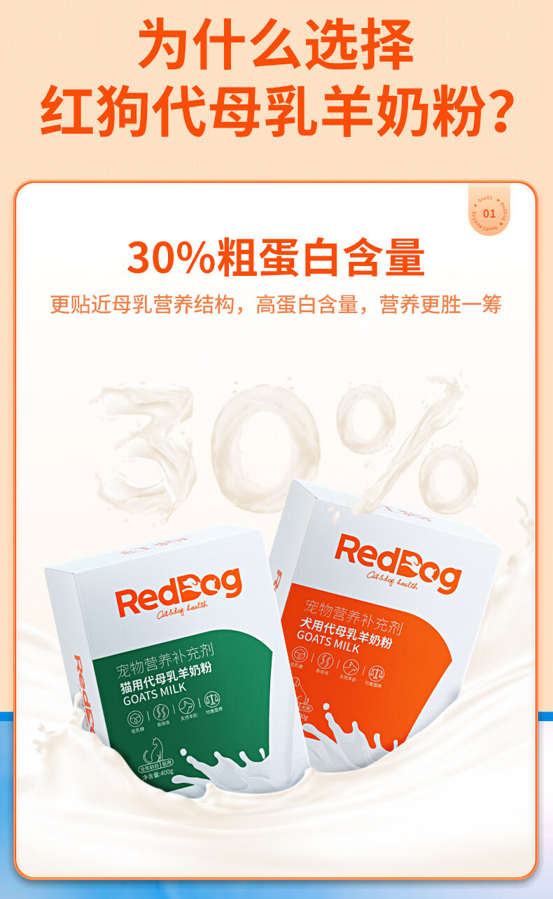 RedDog goat milk powder for dogs 100g, puppies, kittens, dogs, pet milk powder, elderly dogs, pregnancy, low lactose, sick, weak and nutritional supplements, only for dogs (not including spoon)