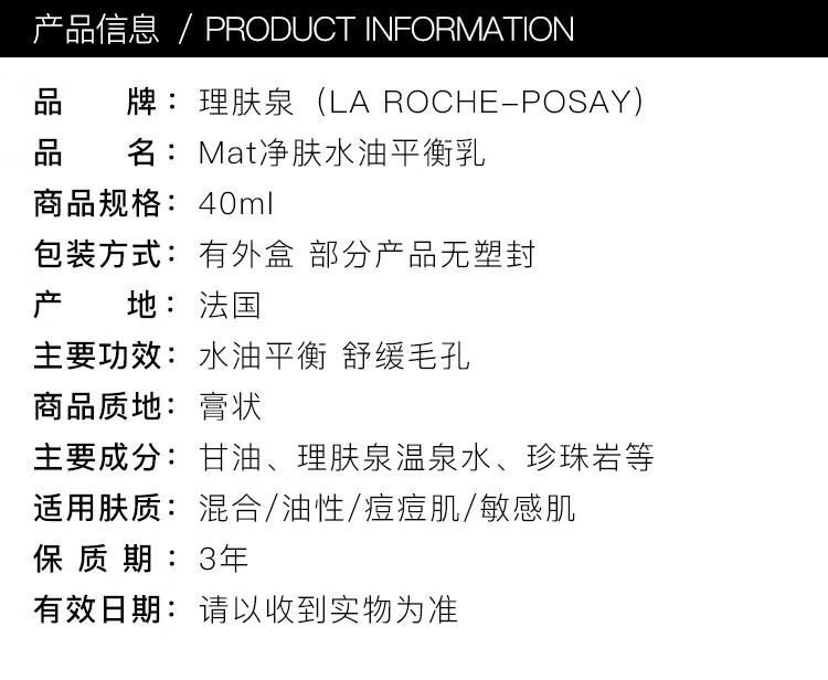 La Roche-Posay Mat whey acne purifying water and oil balancing lotion 40ml soothing and repairing imported men and women gifts
