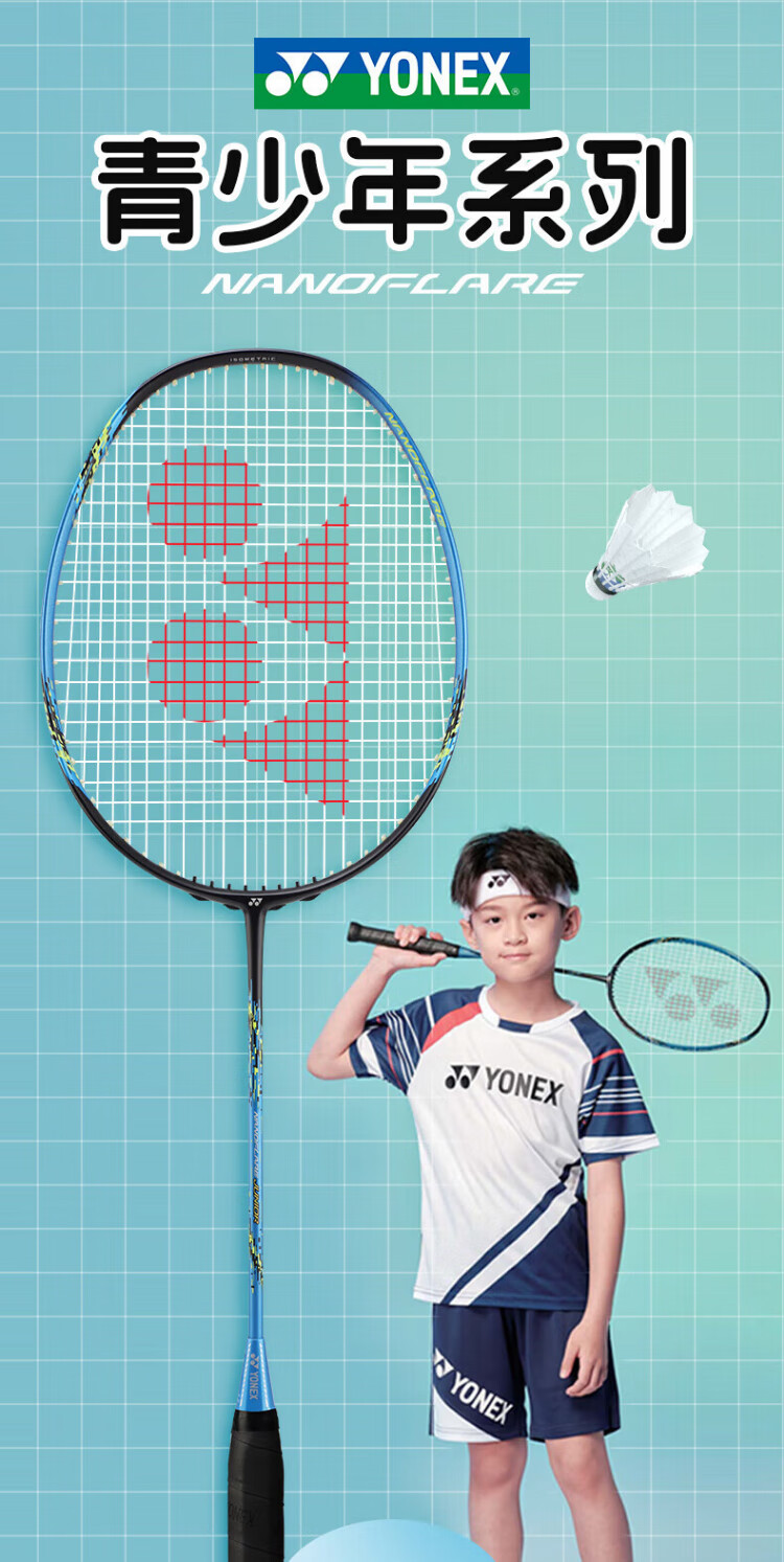 YONEX Yonex badminton racket youth yy full carbon single shot training NFJR blue and green with hand glue threaded 4U