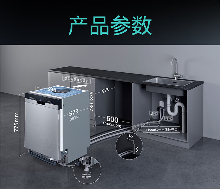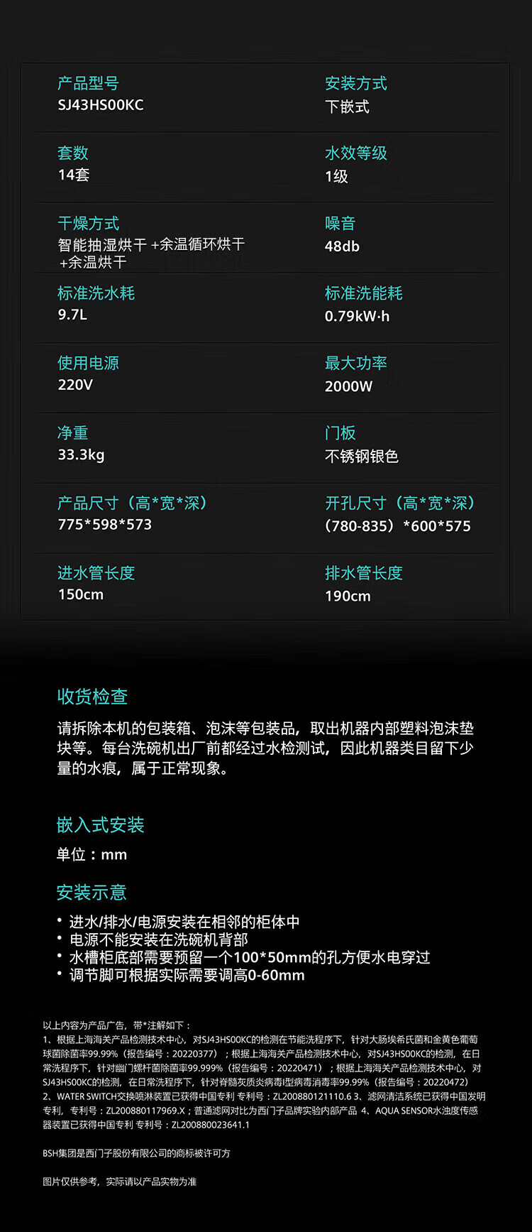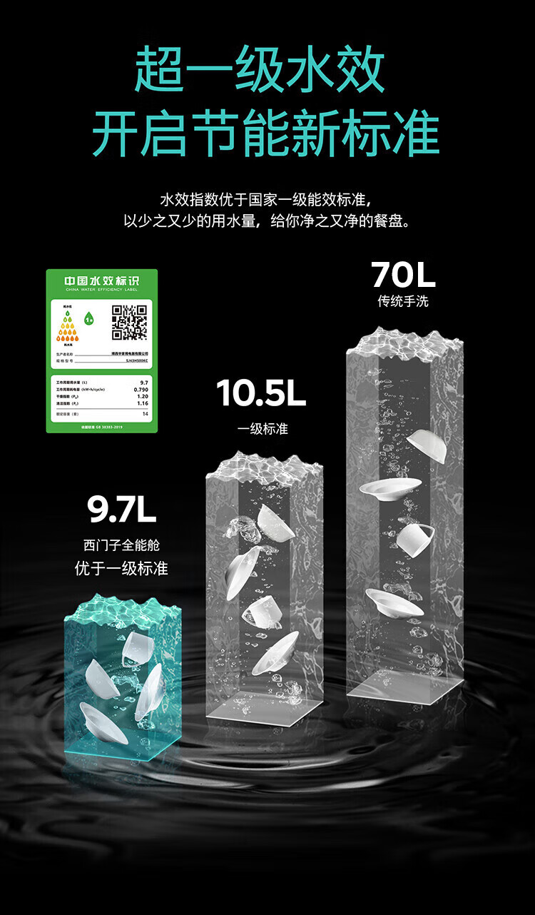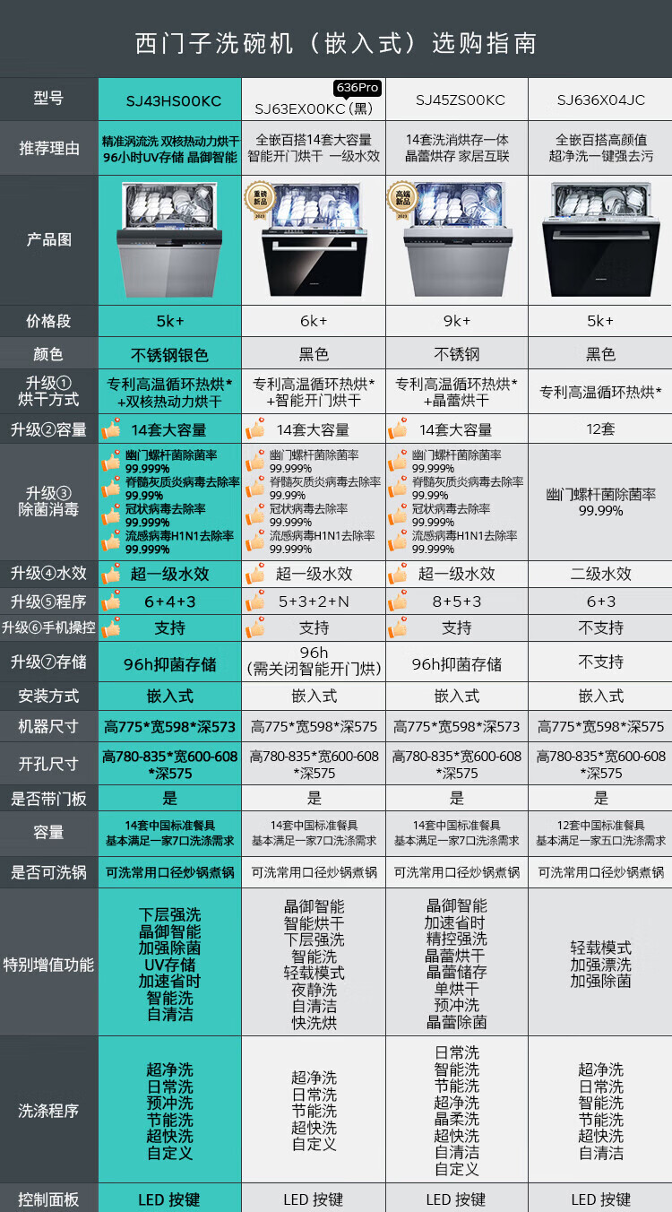 Siemens 14 sets of all-around cabin dishwasher embedded, disinfection, precision eddy current, intelligent dehumidification and drying, 96h storage, intelligent sterilization and disinfection, SJ43HS00KC