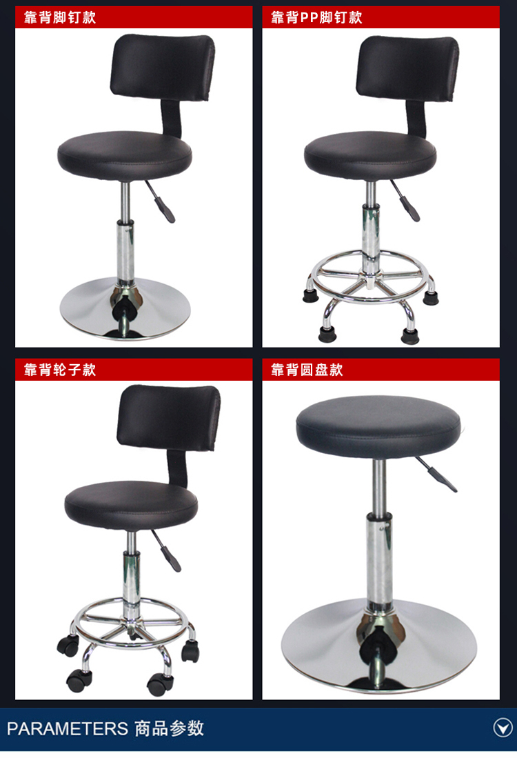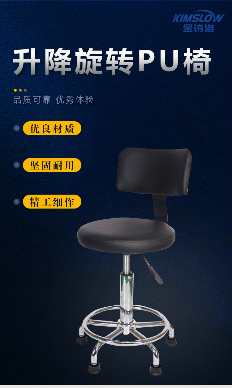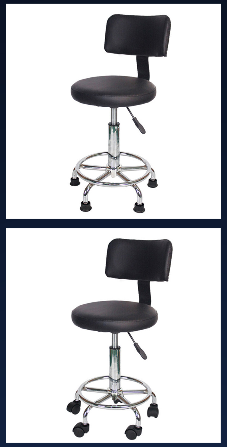 Jinshiluo K6210 Employee Stool Round Stool Laboratory Lift PU Chair Work Station Facilities Backrest Disc Style - Black Need to be installed by yourself Customized