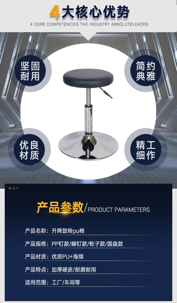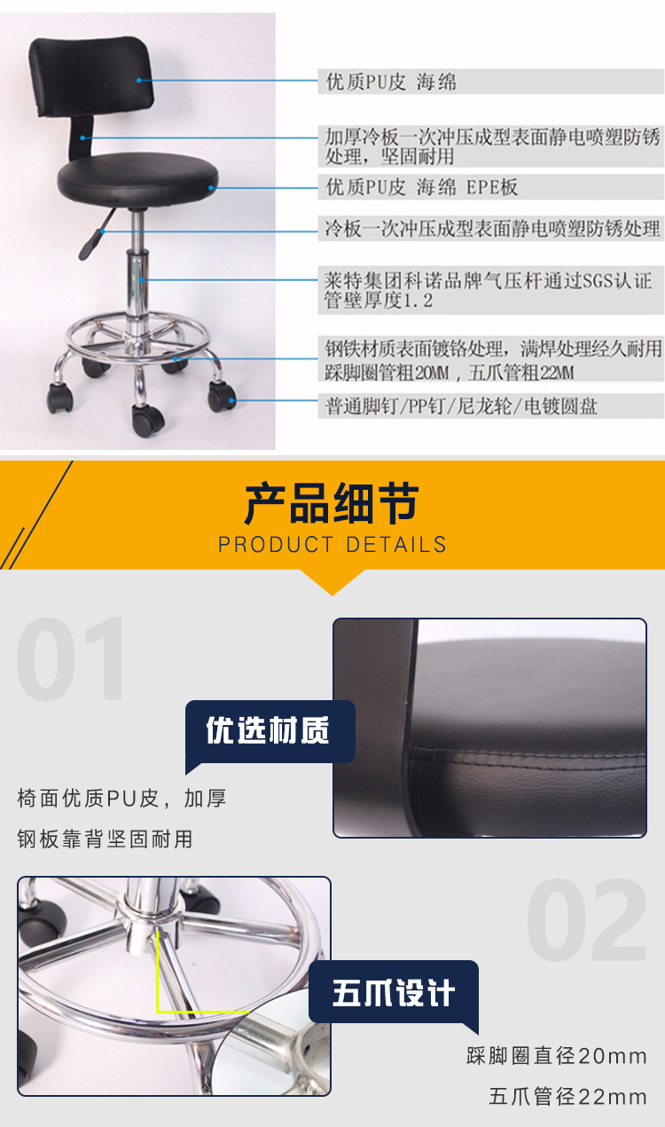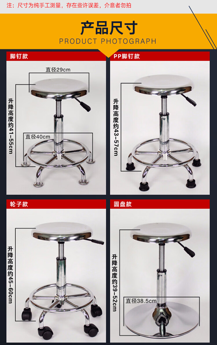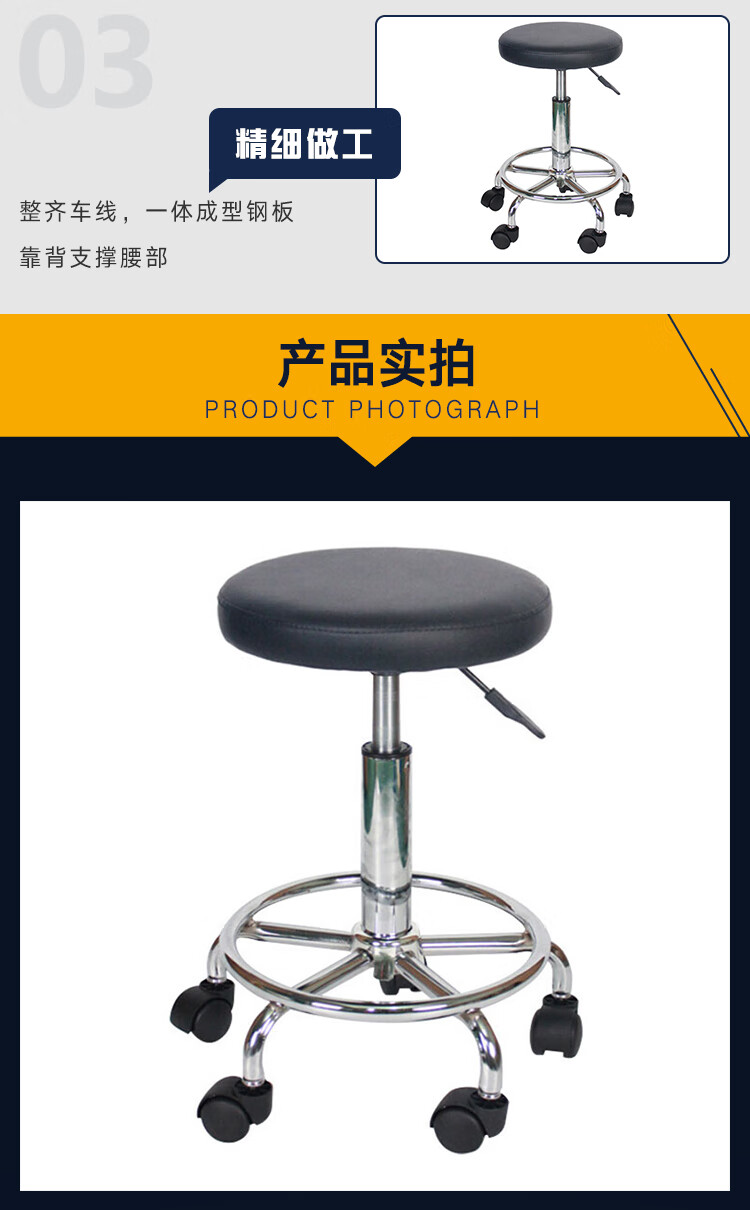 Jinshiluo K6210 Employee Stool Round Stool Laboratory Lift PU Chair Work Station Facilities Backrest Disc Style - Black Need to be installed by yourself Customized