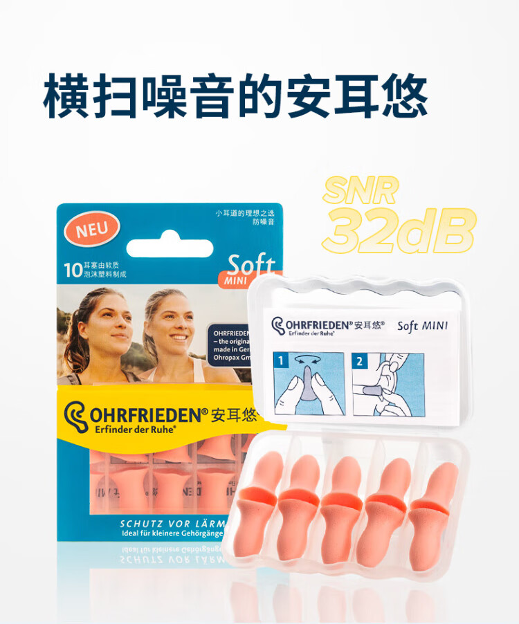 An Eryou, noise-proof sleeping earplugs, sound insulation, work, study, snoring, imported from Germany, small skin color, 5 pairs