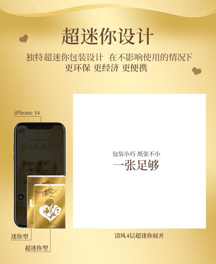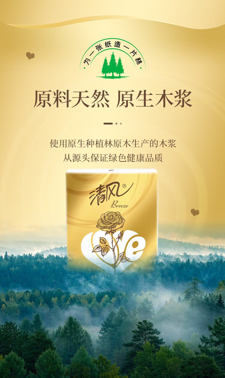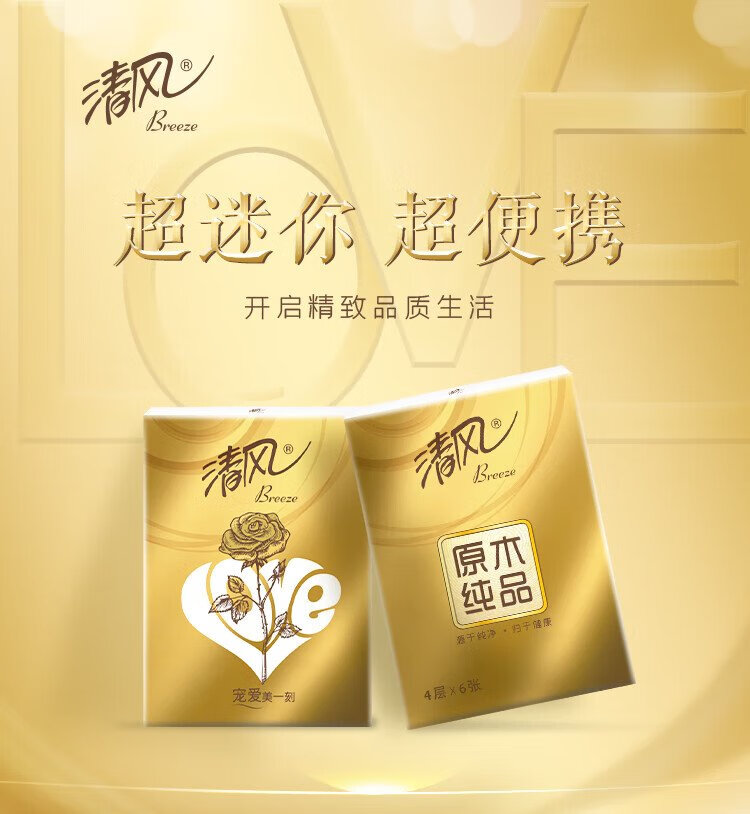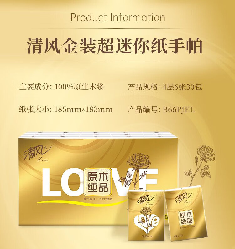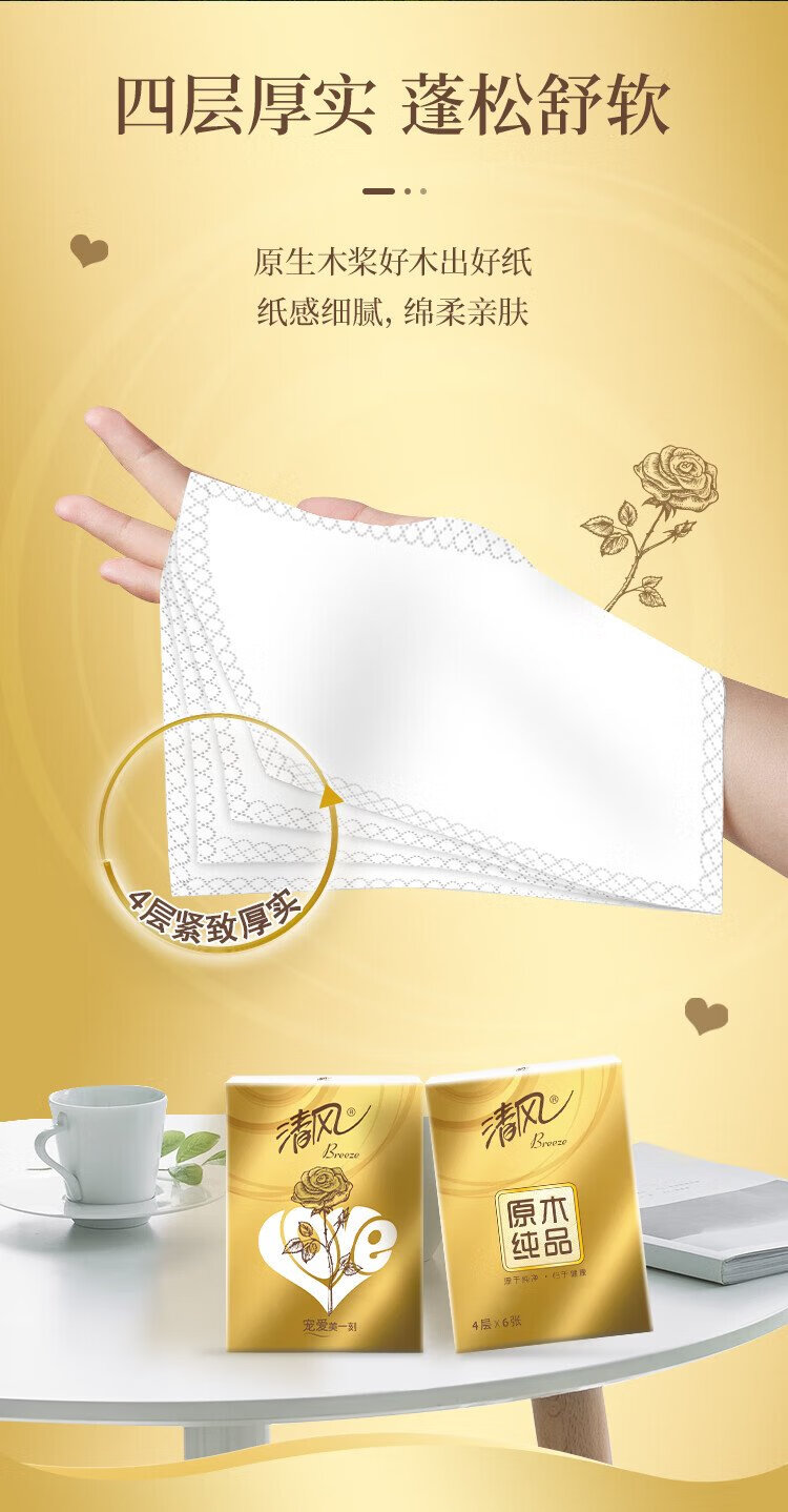 Qingfeng log gold handkerchief paper 30 packs one by one 30 packs 4 layers 6 pieces/pack [3 pieces] B66PJE-3