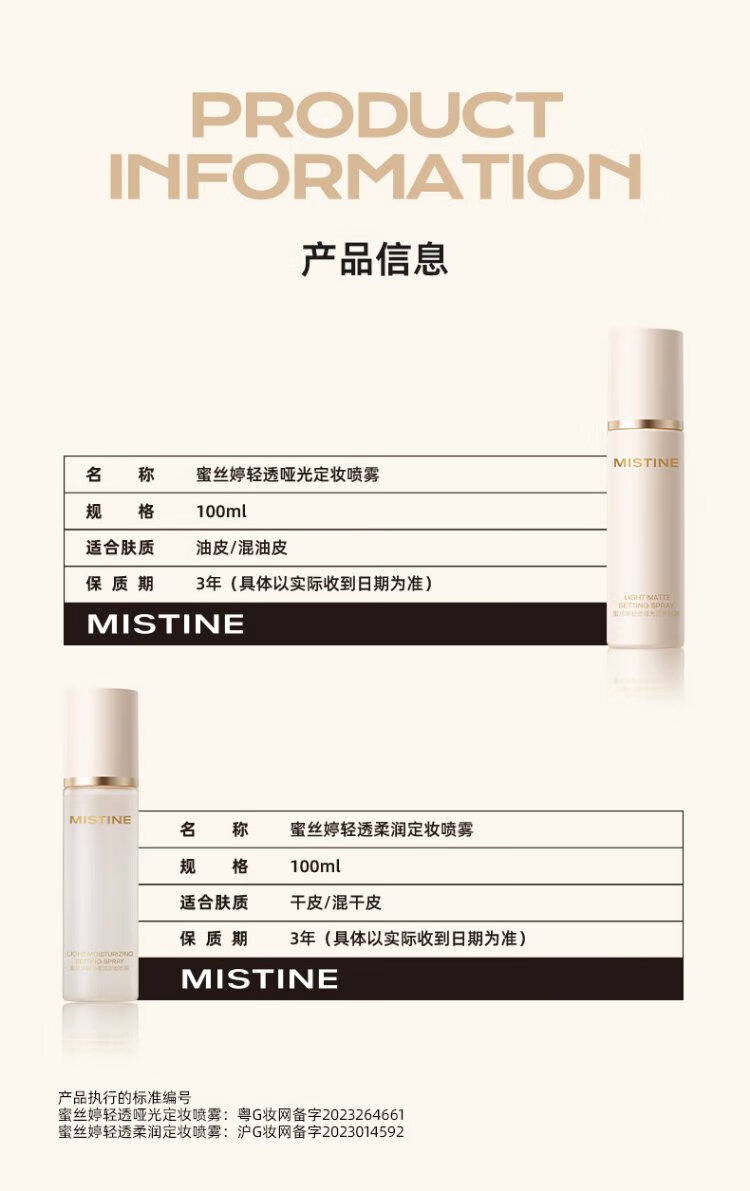 Mistine Mistine makeup setting spray, long-lasting clear and soft mist, suitable for oily skin. A birthday gift for your girlfriend for oily skin.