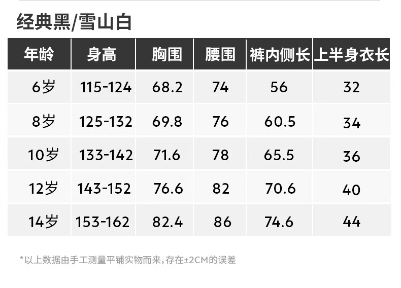 China (cm) 165 / 88-90 170 / 96-98 175 / 108-110 180 / 118-122 185 / 126-130
