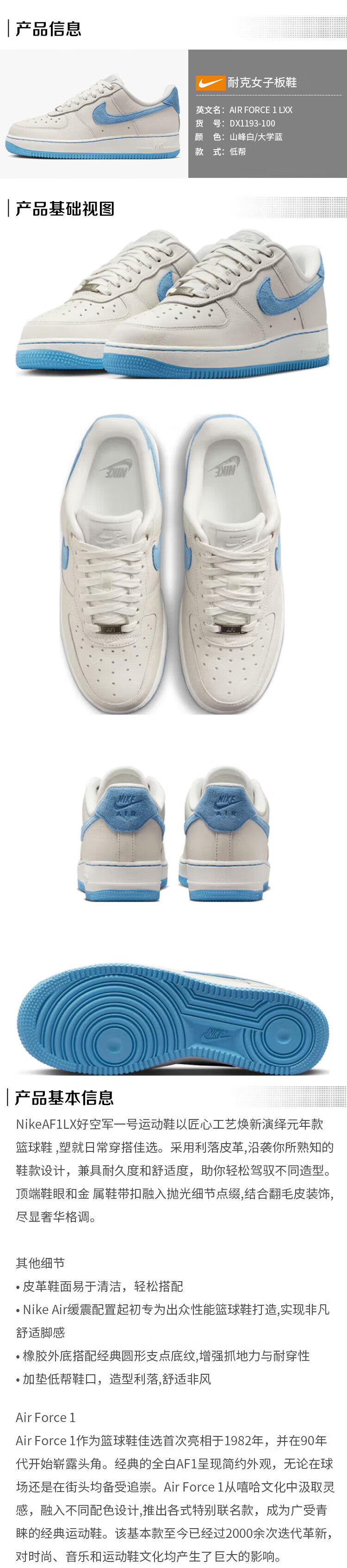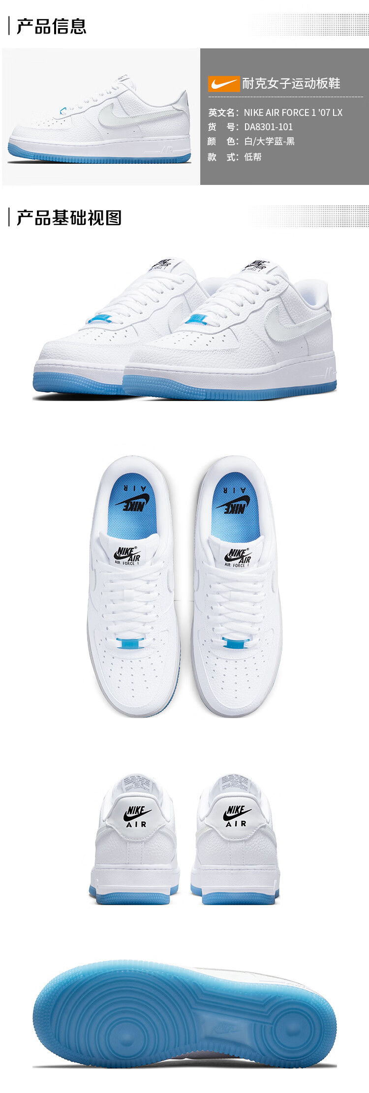 Nike NIKE sneakers women's Air Force 1 AF1 AIR FORCE 1 sneakers DX1193-100 white blue 36