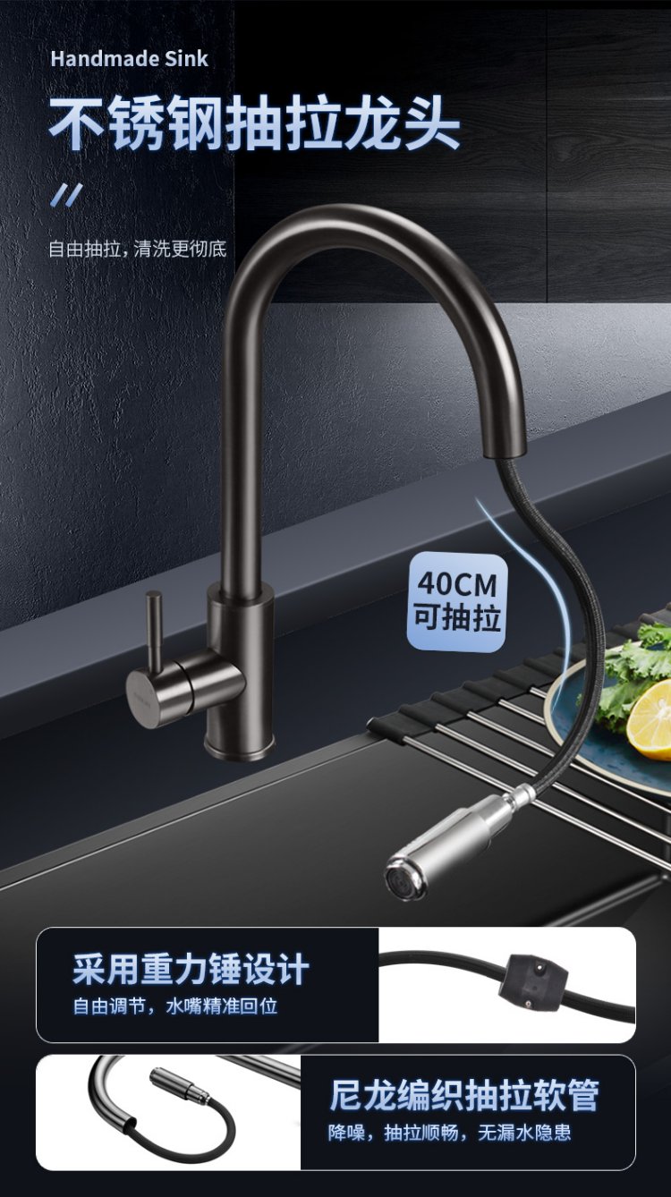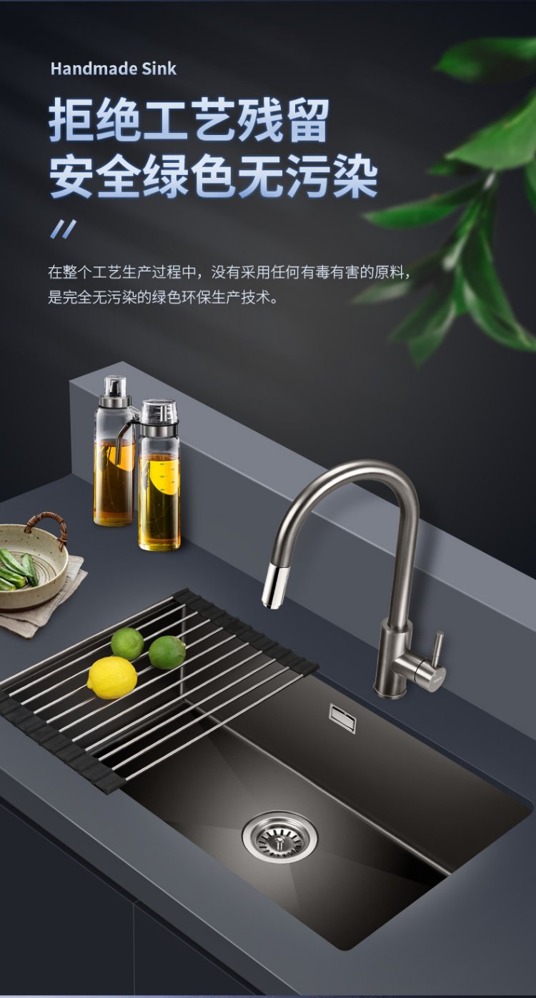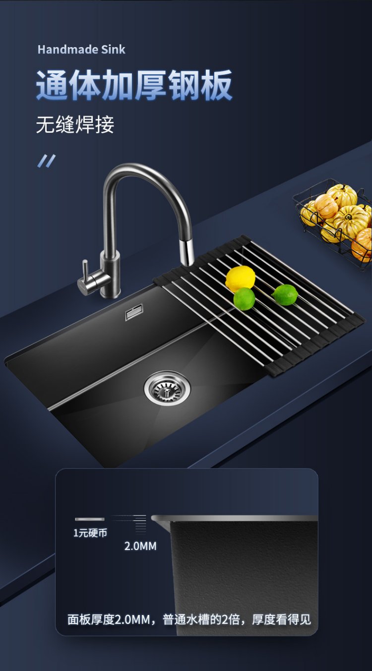 Olin black nano sink single sink set kitchen sink handmade sink sink under counter basin 9115H