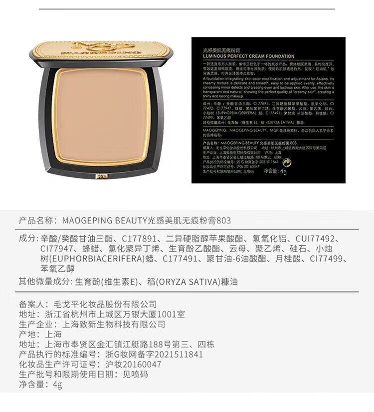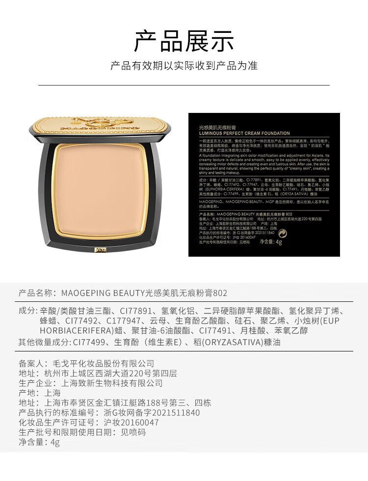 Mao Geping light-sense beauty seamless powder cream concealer foundation #802 light pink 7.5g birthday gift for women