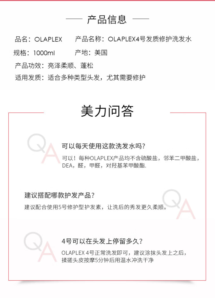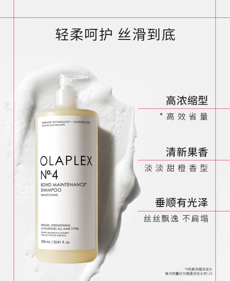 Olaplex No. 4 Hair Repair Shampoo 1L, color protection and color fixation, oil control and fluffiness, improves permed and dyed damaged hair