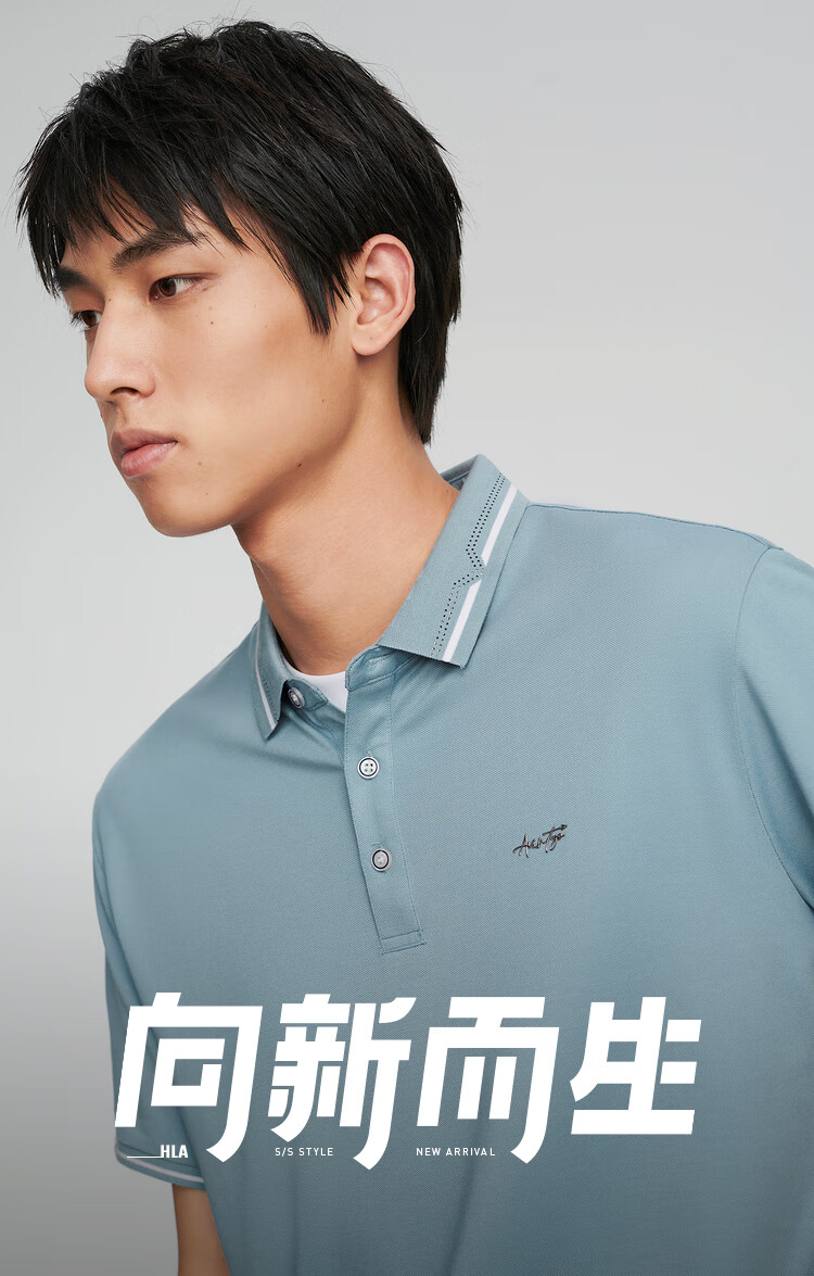 HLA Hailan House Summer 23 lapel mulberry silk top bottoming shirt for men HNTPW2Y015A