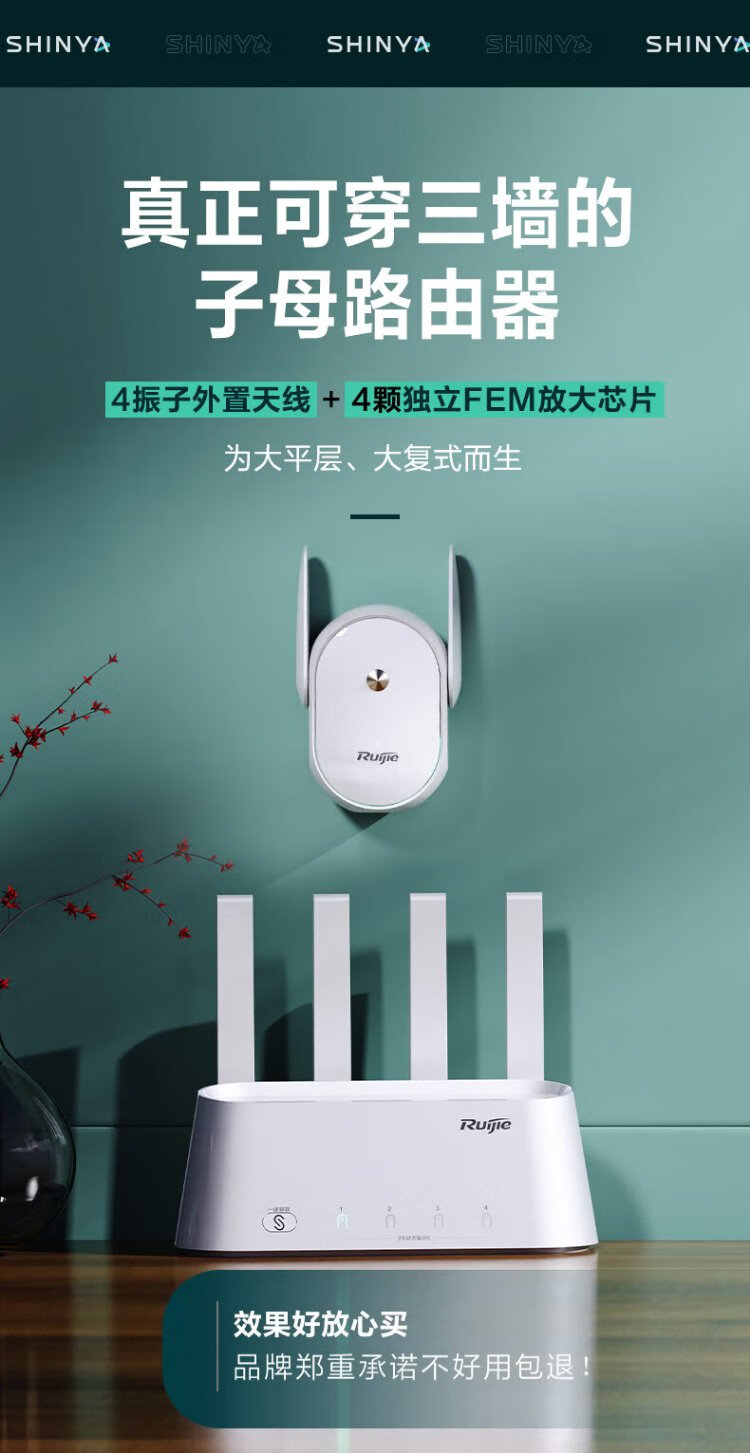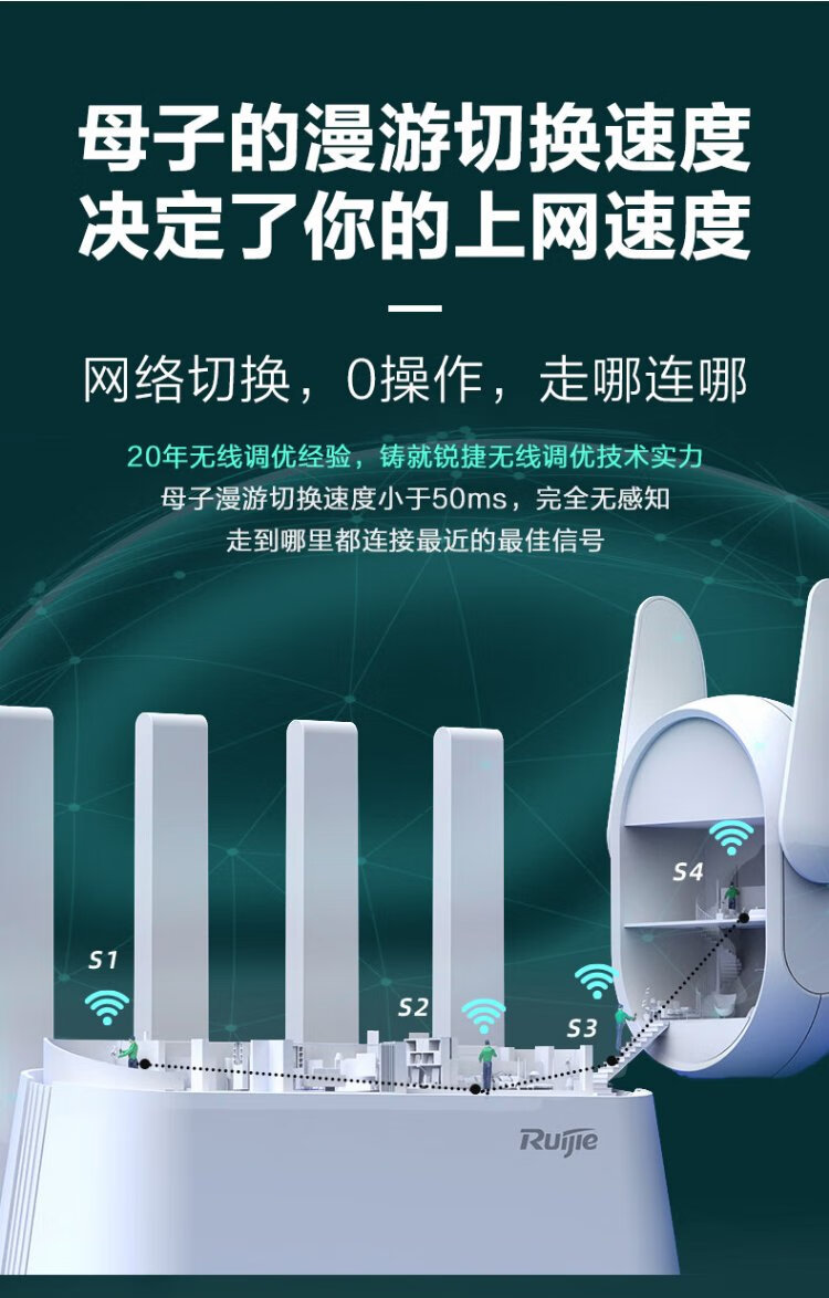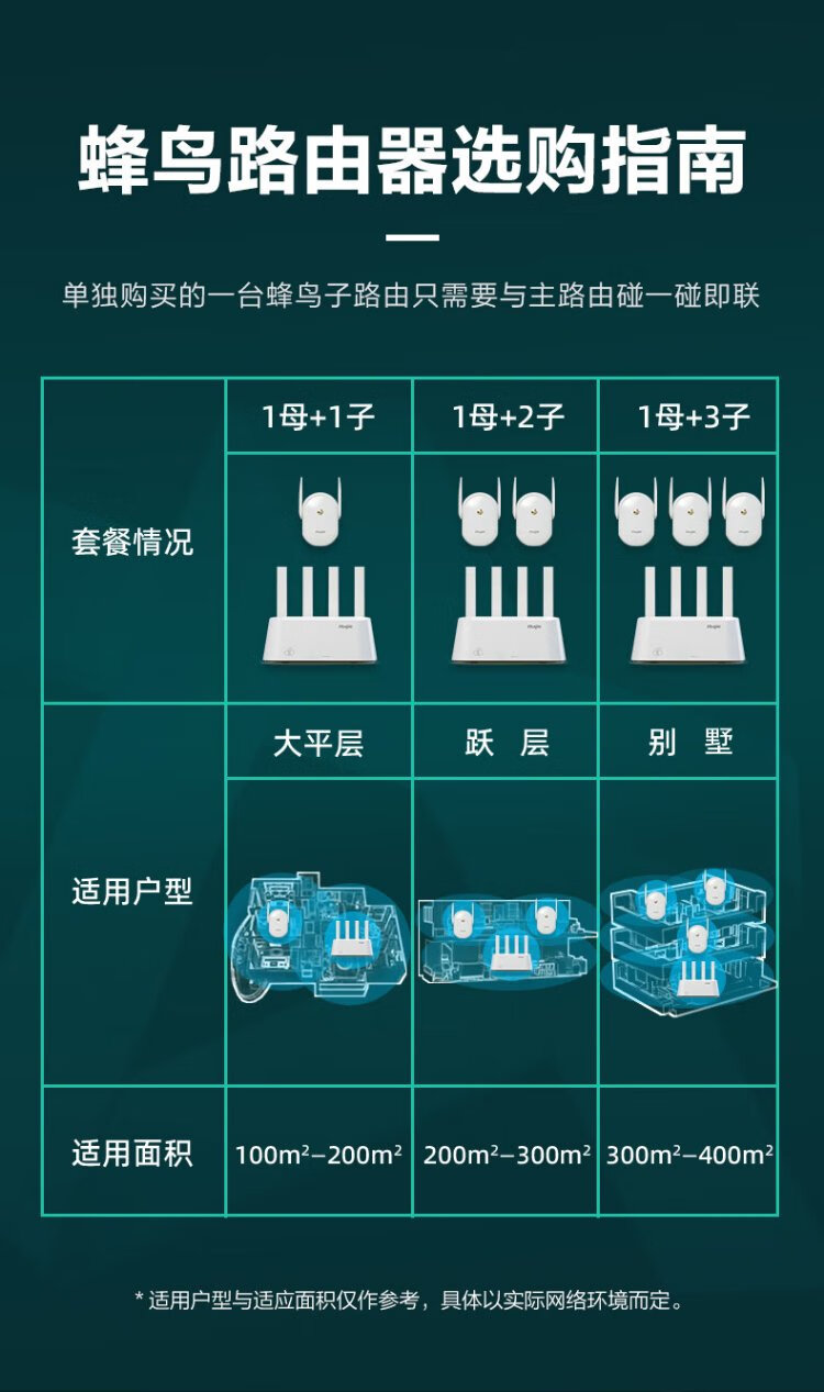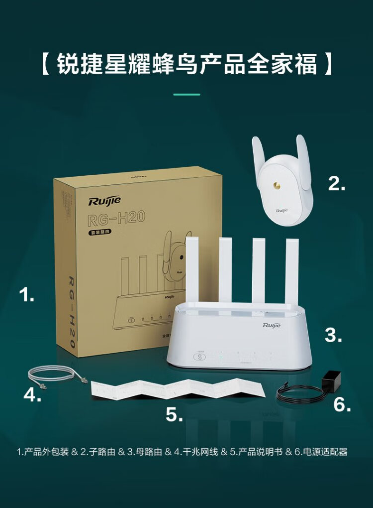 Ruijie Hummingbird H20M (1+1) sub-mother router Gigabit home large-scale routing whole-house wifi package plug and play mesh networking