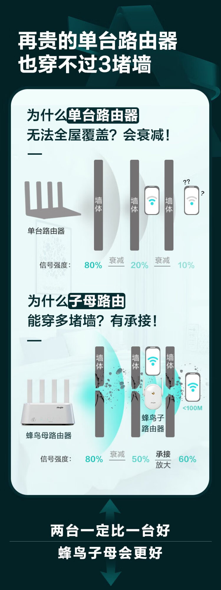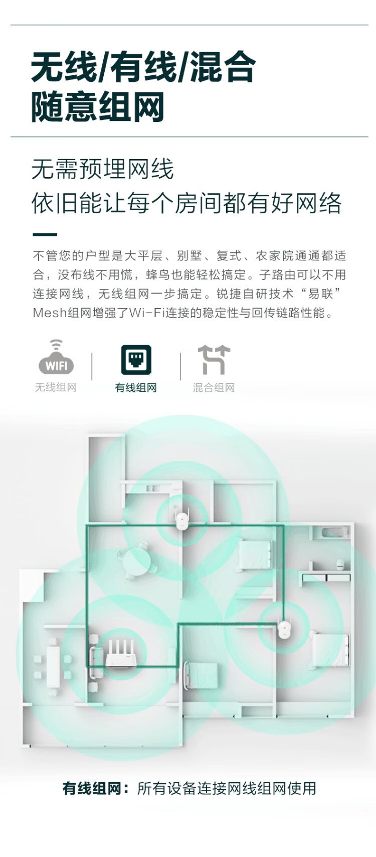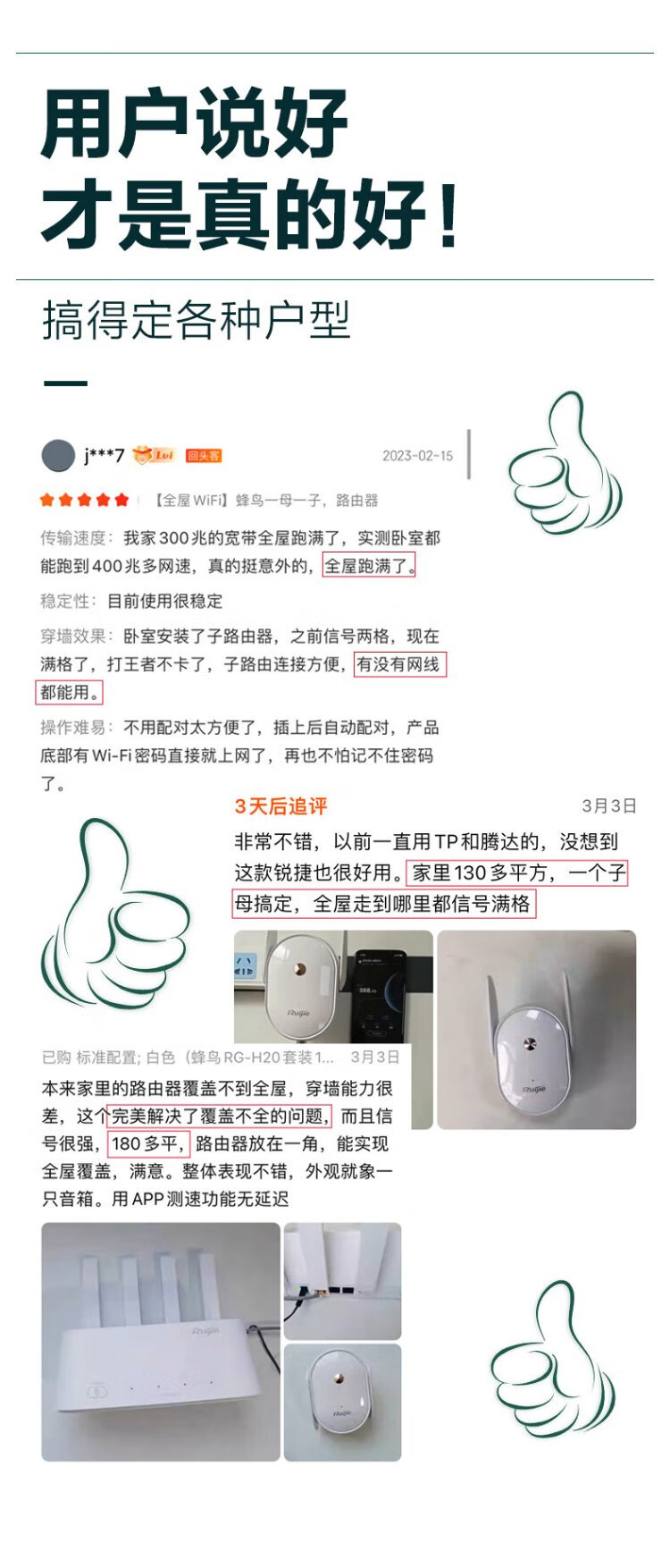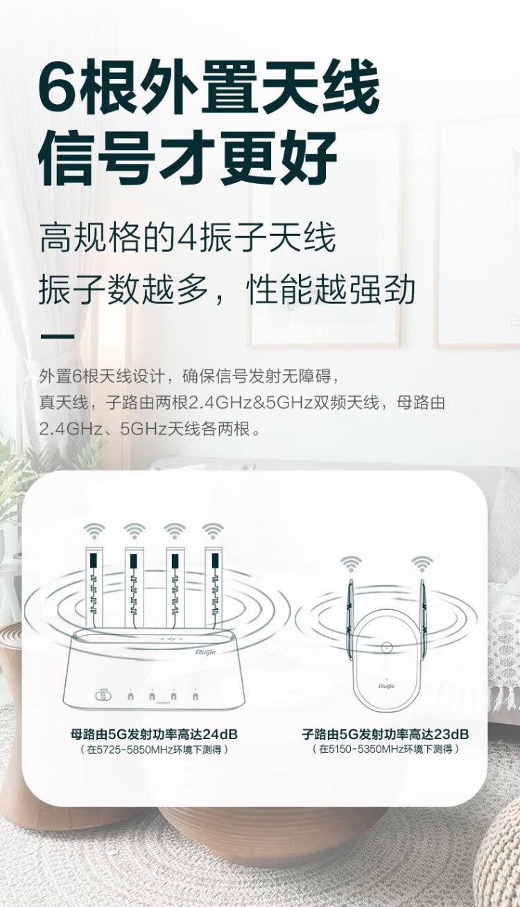 Ruijie Hummingbird H20M (1+1) sub-mother router Gigabit home large-scale routing whole-house wifi package plug and play mesh networking