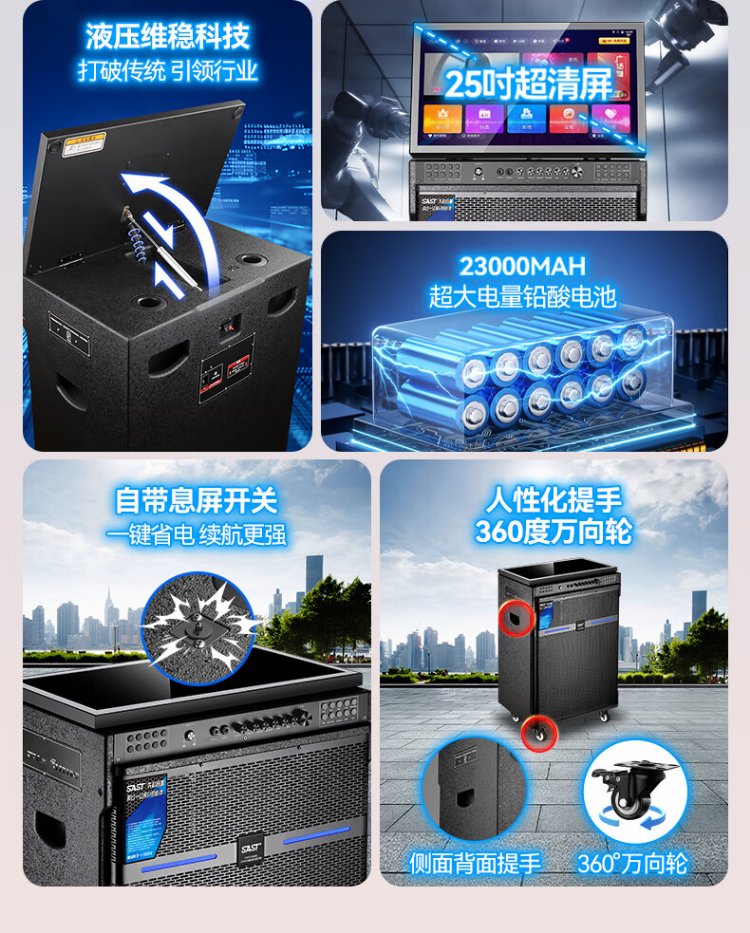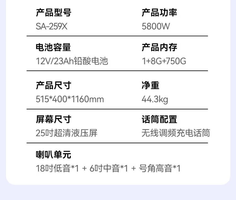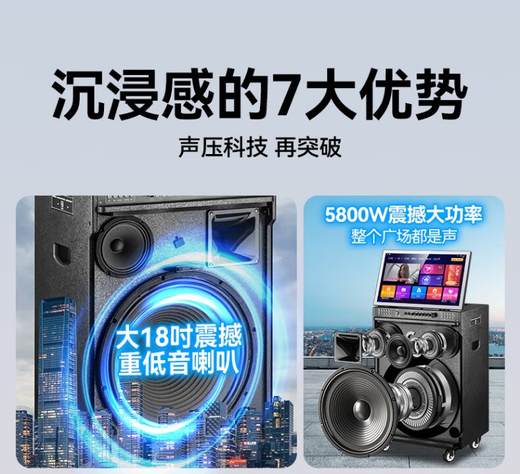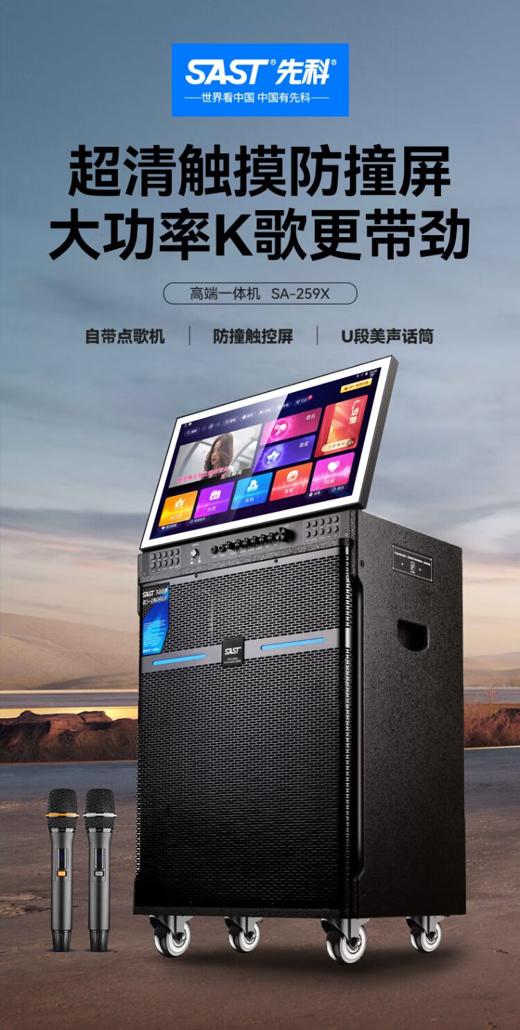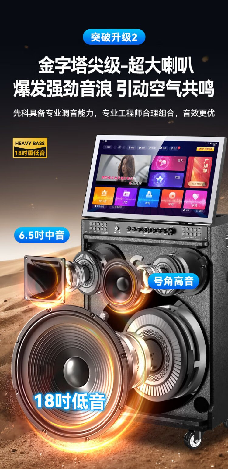 Xianke SA-259X square dance with display screen home ktv audio set karaoke outdoor karaoke microphone mobile audio amplifier all-in-one 18-inch subwoofer high volume