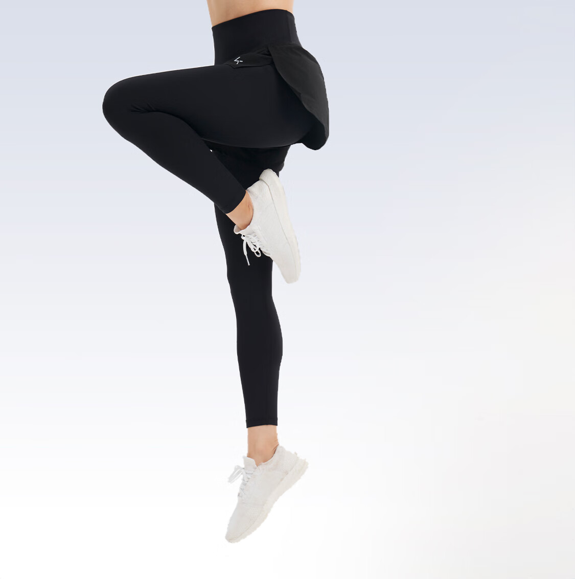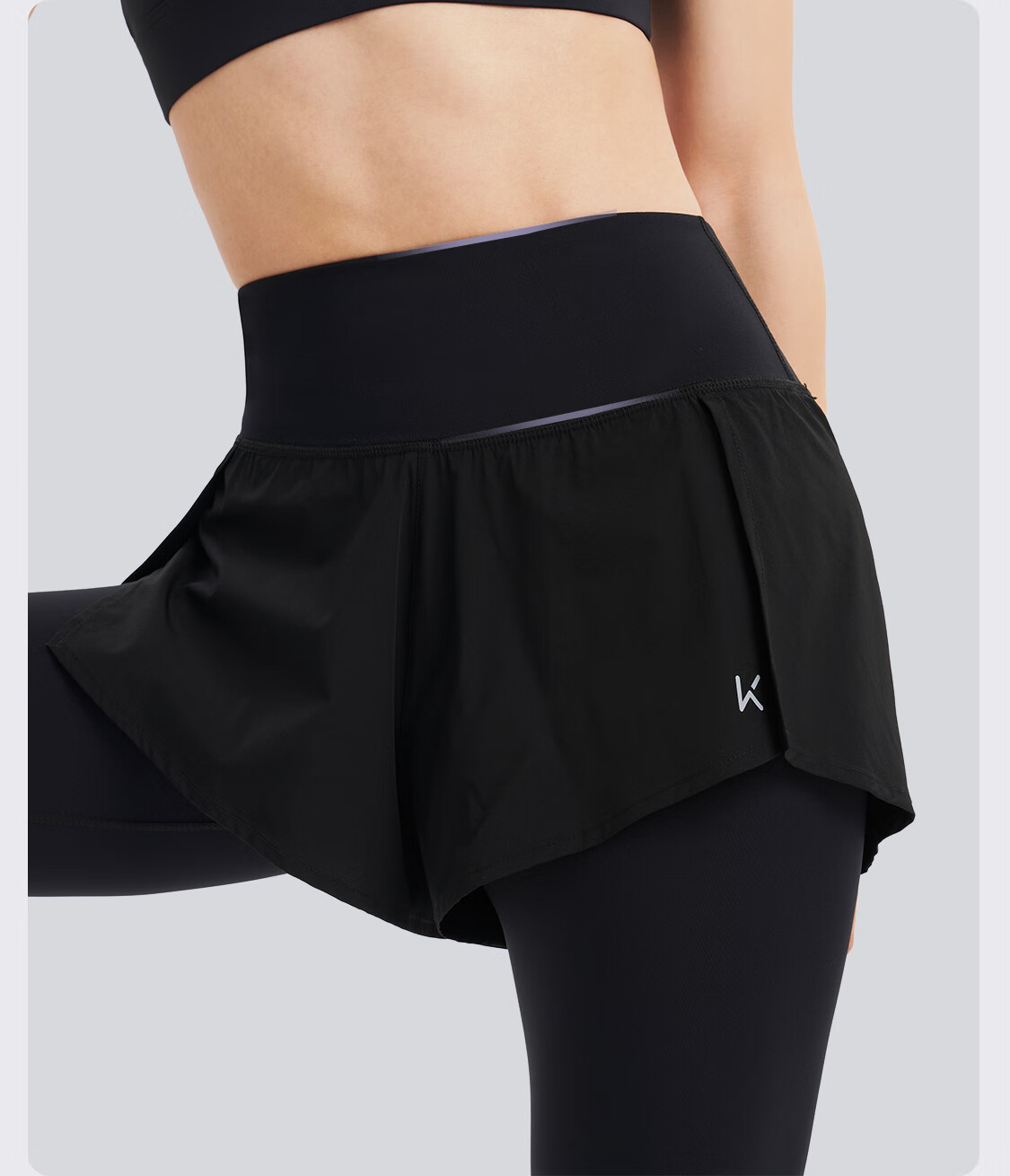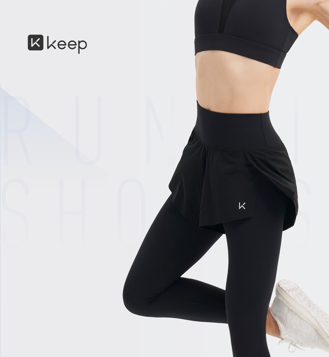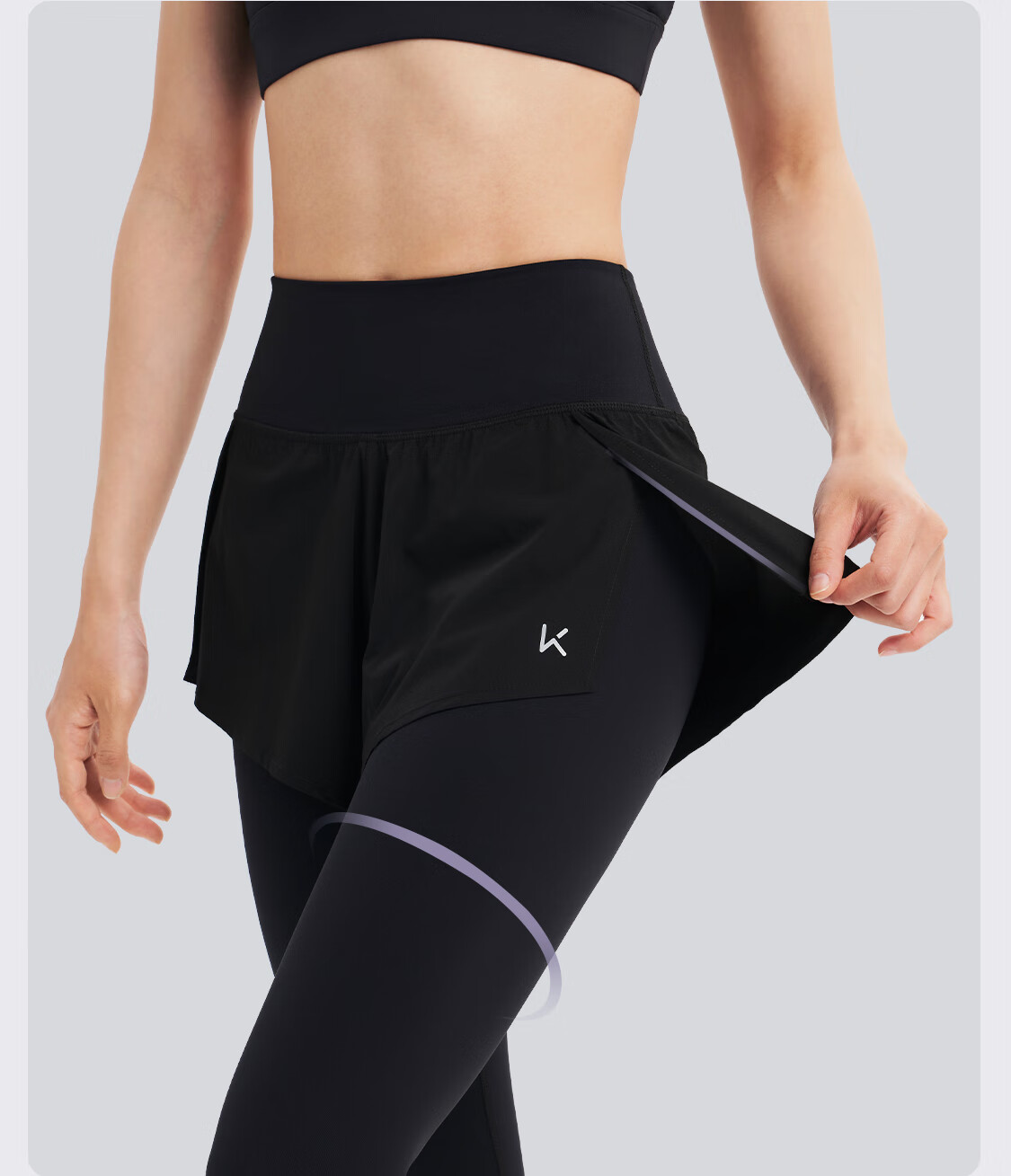 Keep high-waisted quick-drying breathable tights for women running fashion fake two-piece yoga outer wear 12588 classic black S