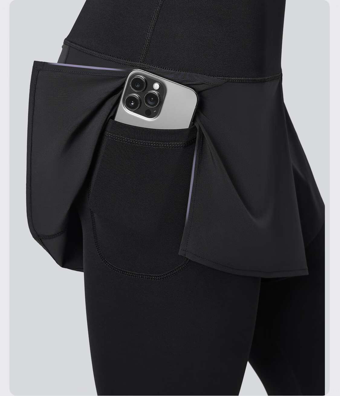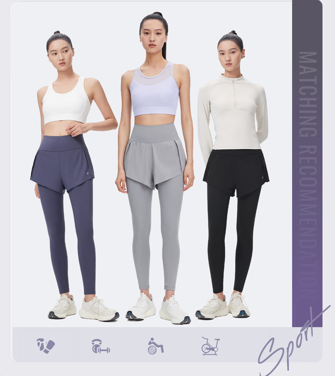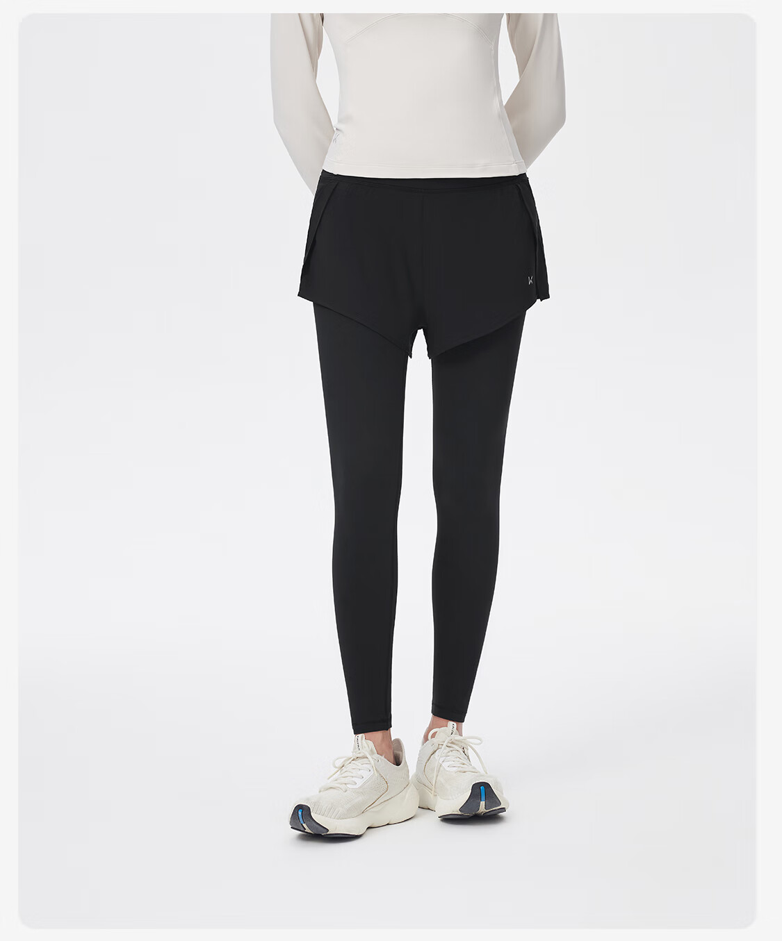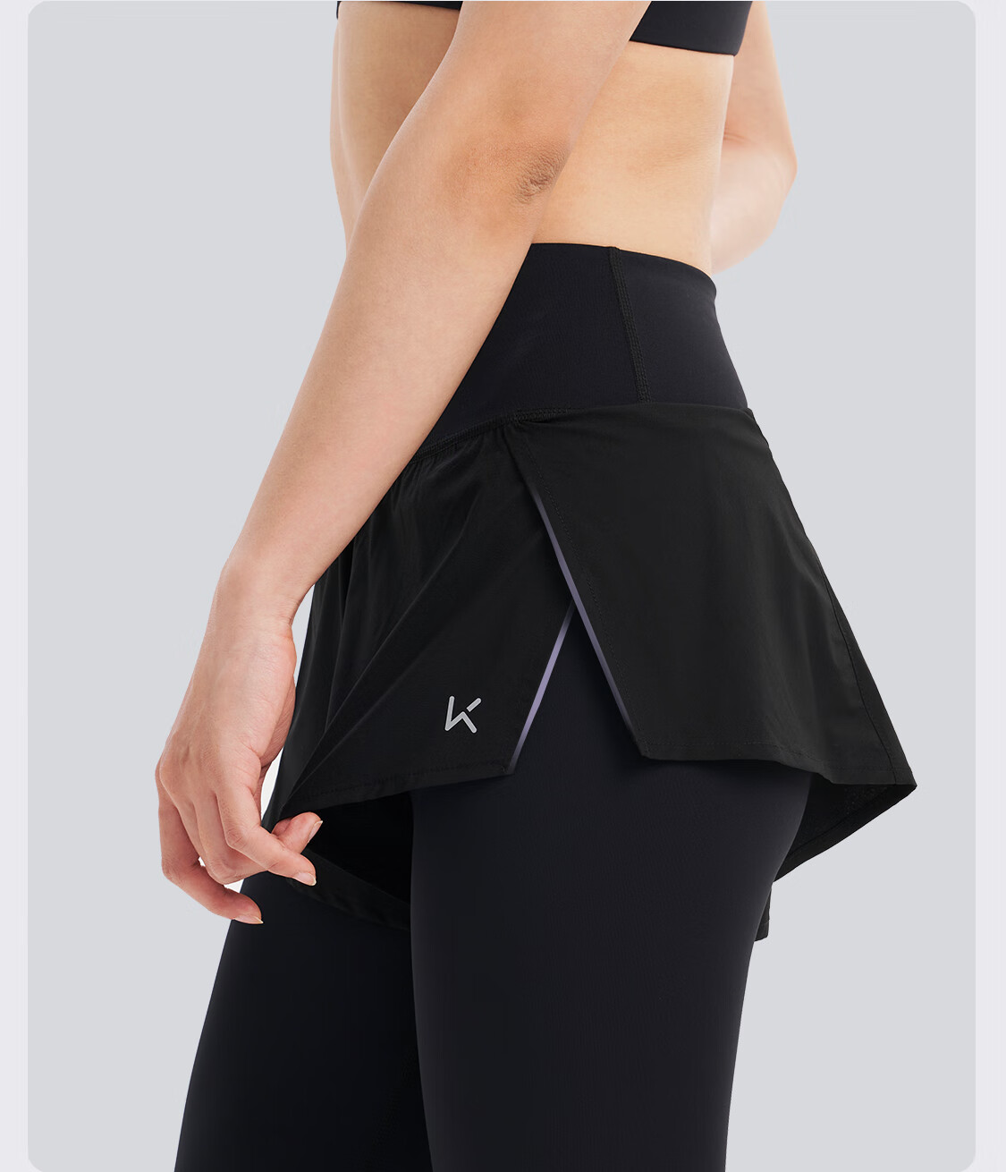 Keep high-waisted quick-drying breathable tights for women running fashion fake two-piece yoga outer wear 12588 classic black S