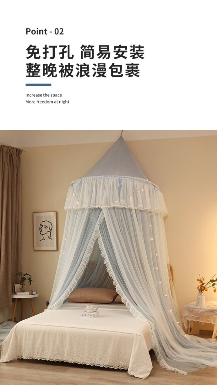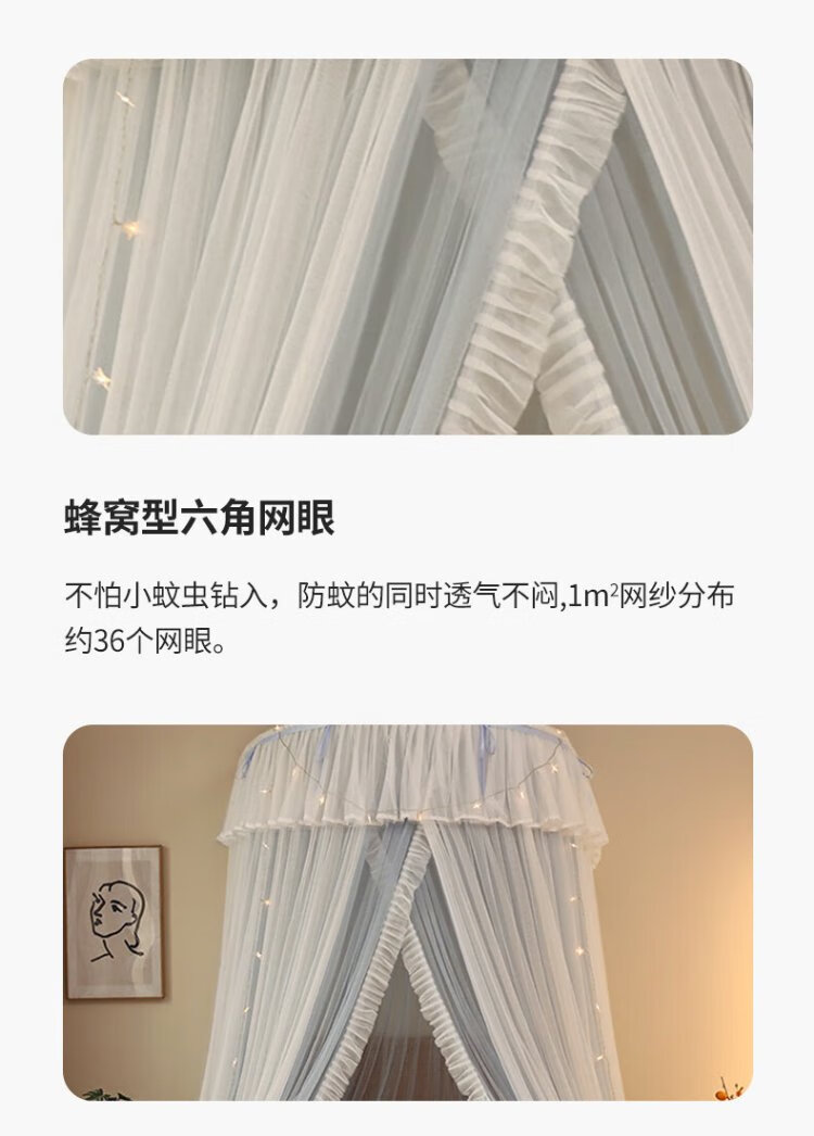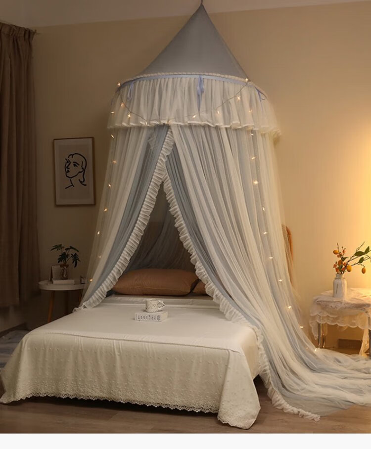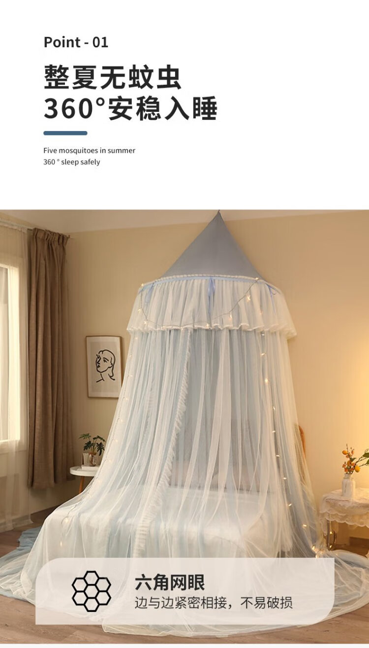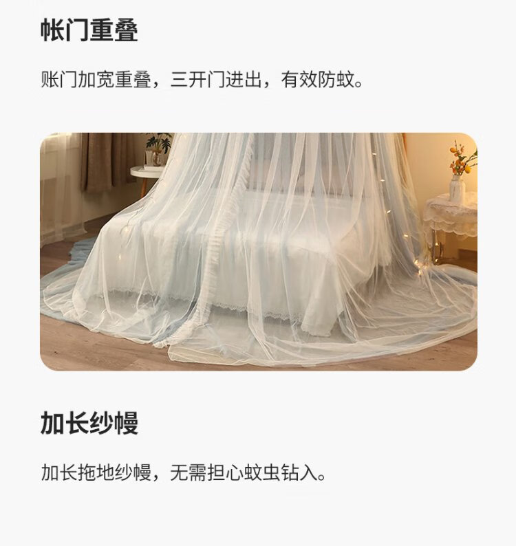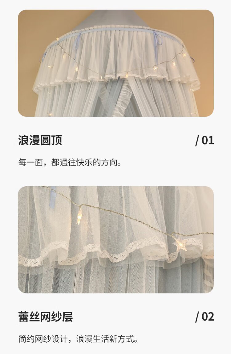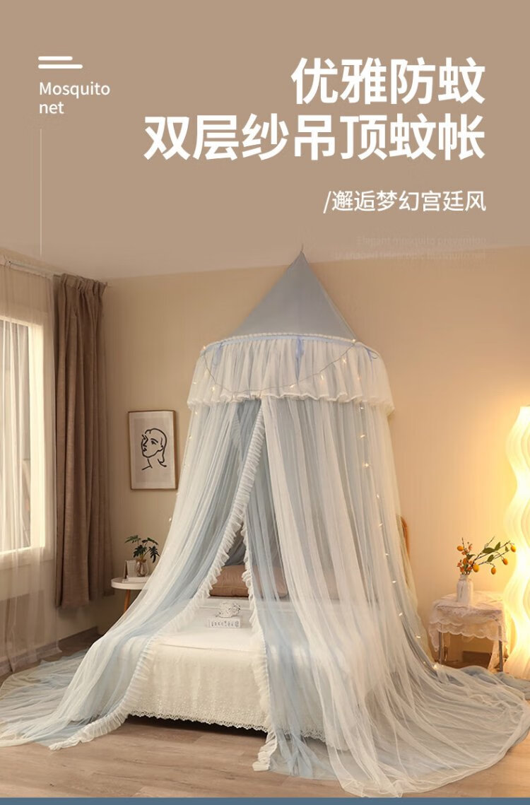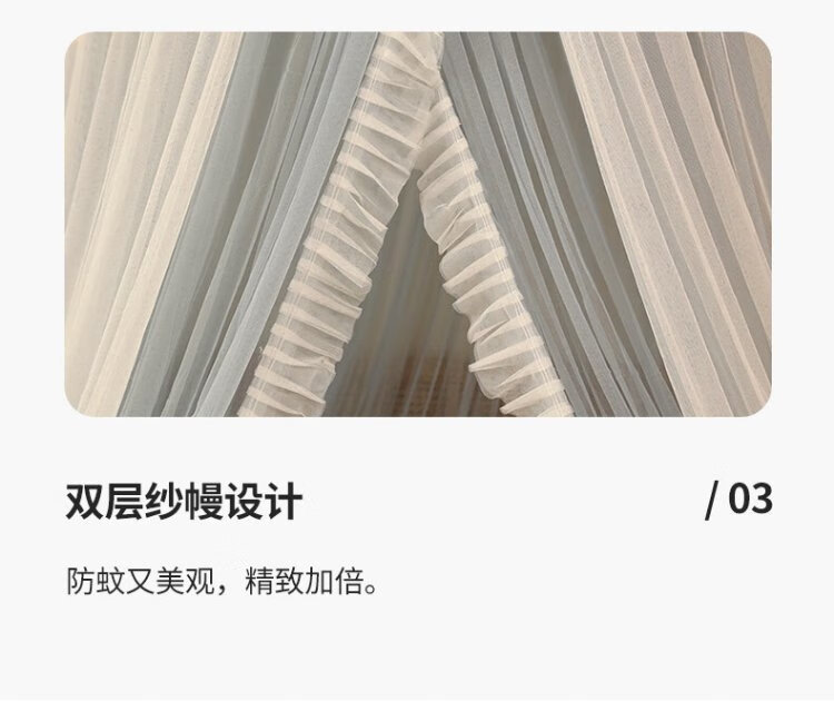 Pierre Cardin ceiling mosquito net double layer half dome home installation-free floor-to-ceiling pattern single double bed gray