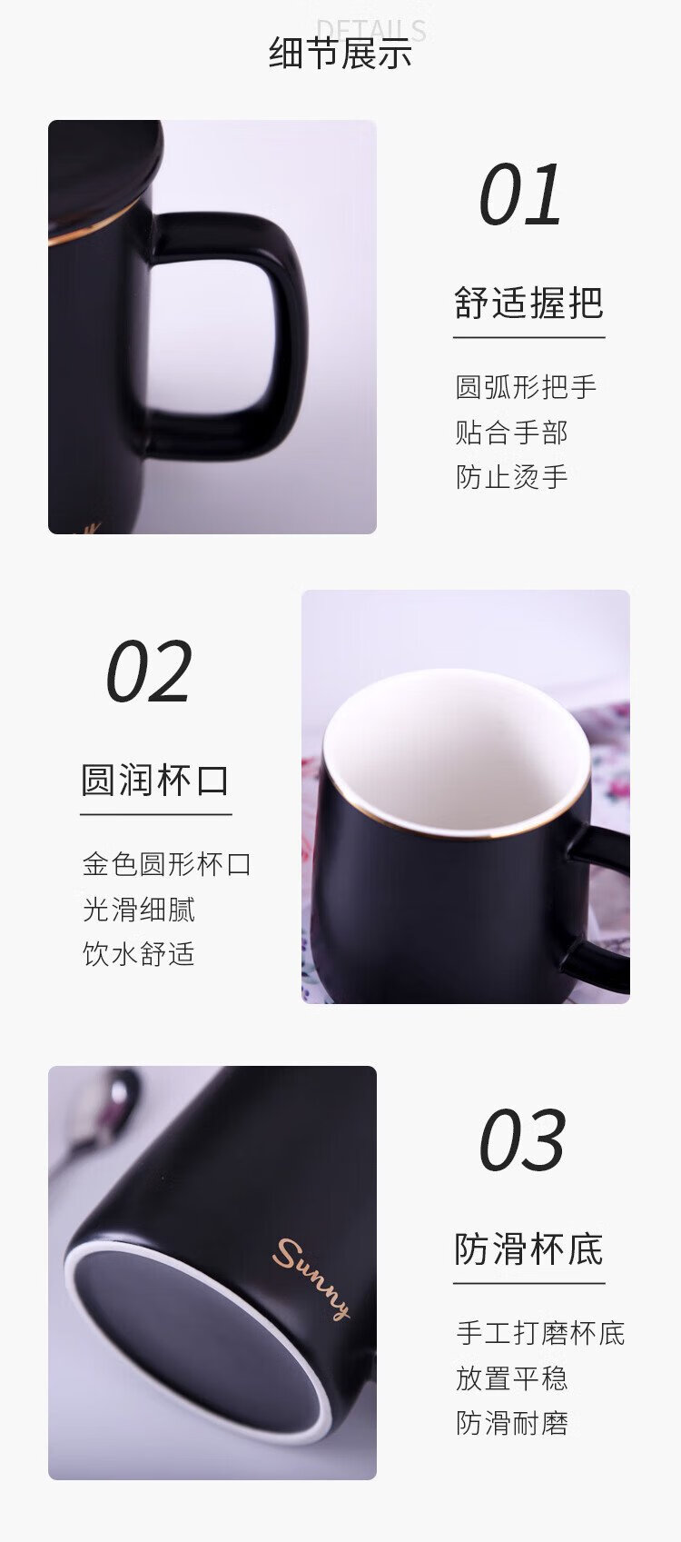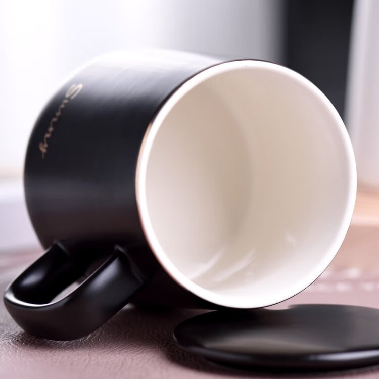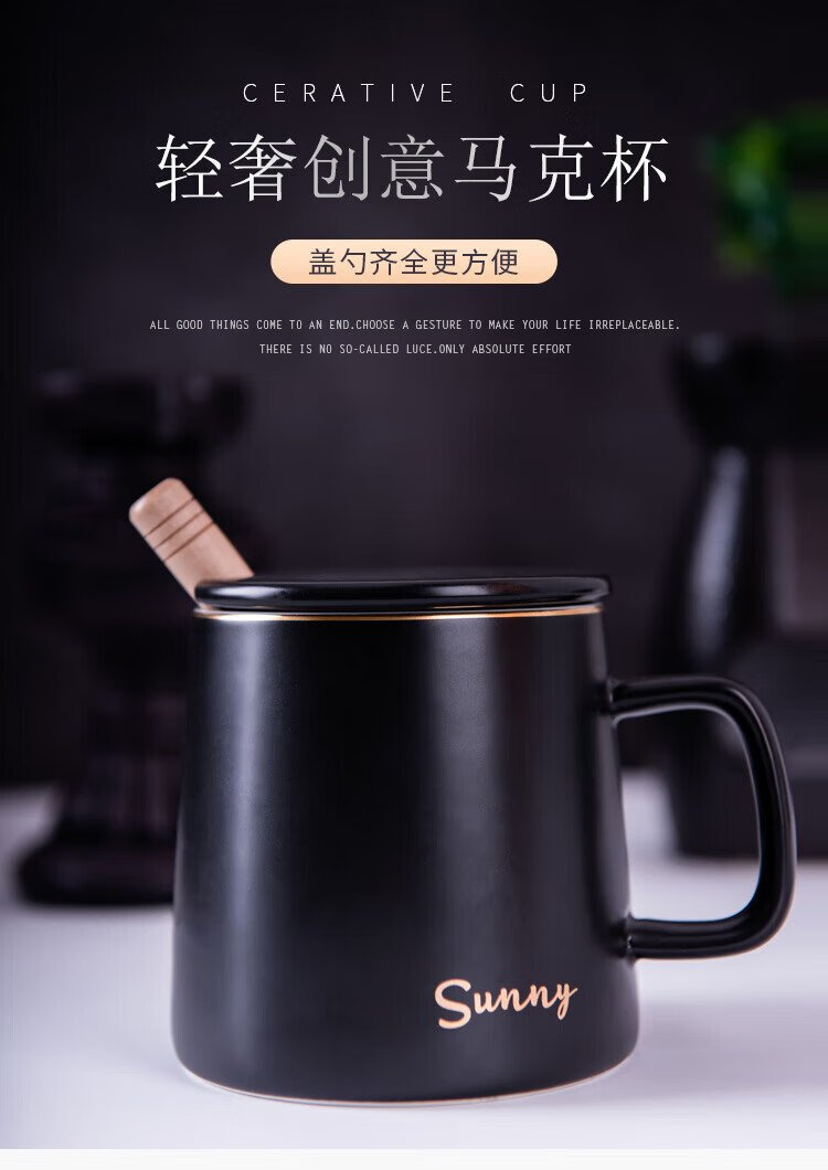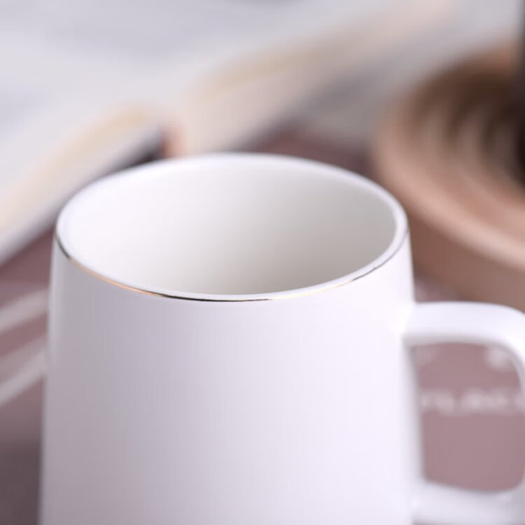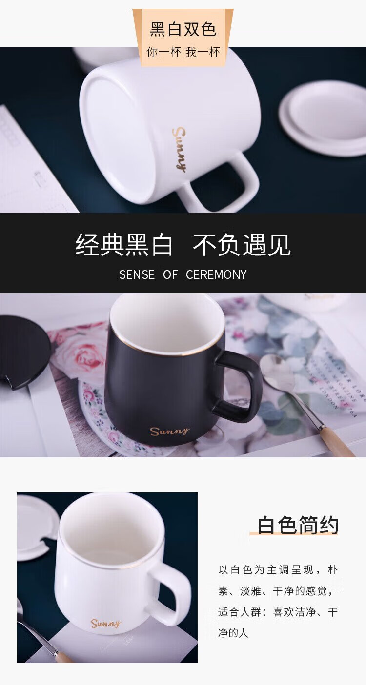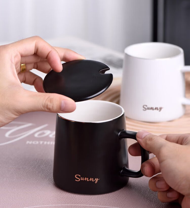 Home Relaxation Ceramic Mug with Spoon Lid for Gifts Coffee Cup Milk Cup Breakfast Cup Office Water Cup Men's and Women's Tea Cup White
