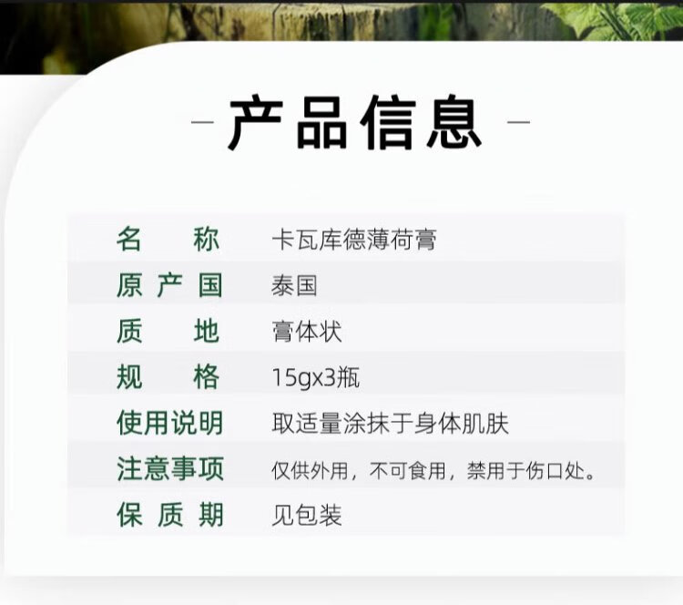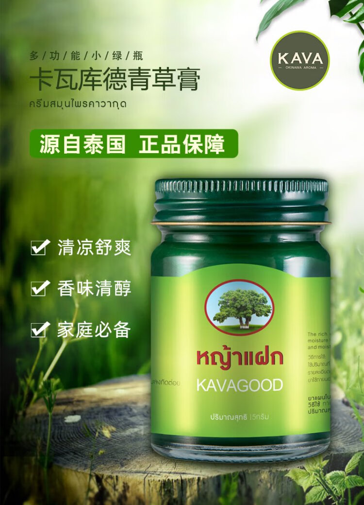 KAVAGOOD Thailand imported grass cream 15g*3 mint cream baby soothing cream mint cream cooling herb