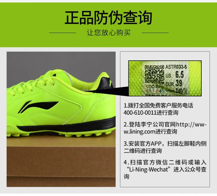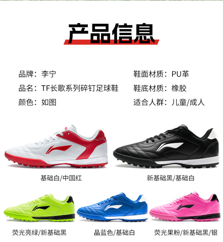 Li Ning football shoes for men and women TF broken nails for adults and teenagers and primary school students and children breathable professional training cushioning nail shoes 42