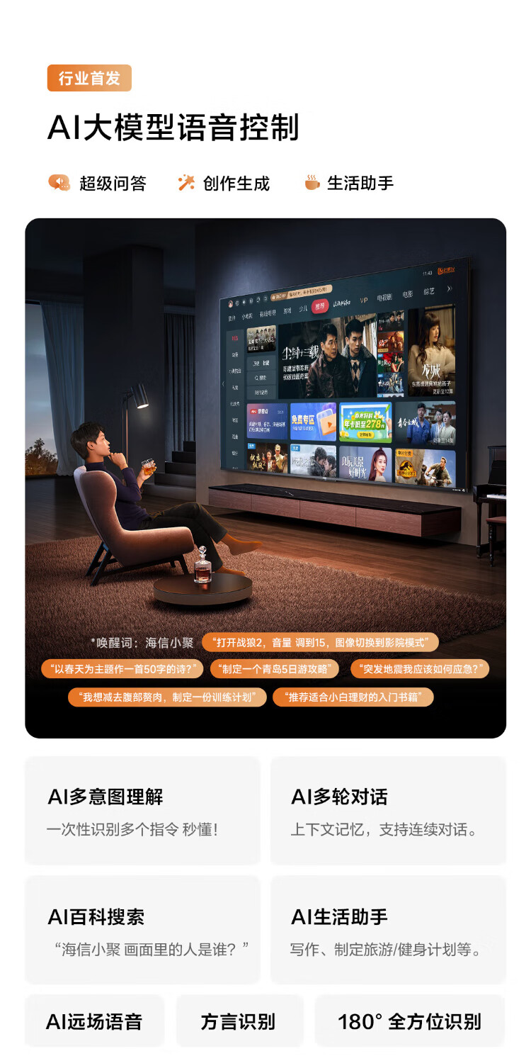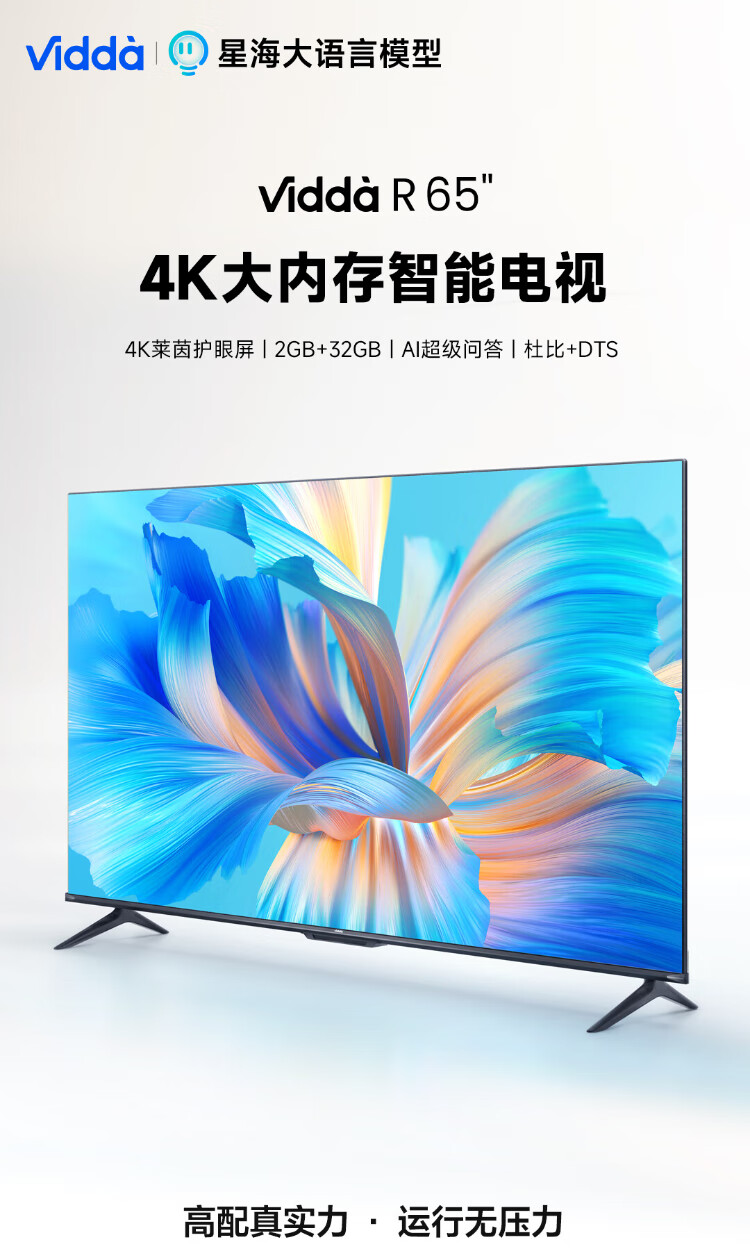 Vidda Hisense TV 65-inch R65 far-field voice 2+32G home appliance trade-in subsidy 4K smart ultra-thin gaming LCD TV giant screen large screen 65V1K-R