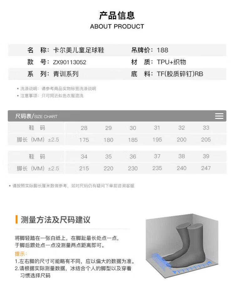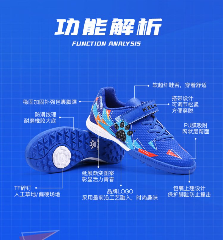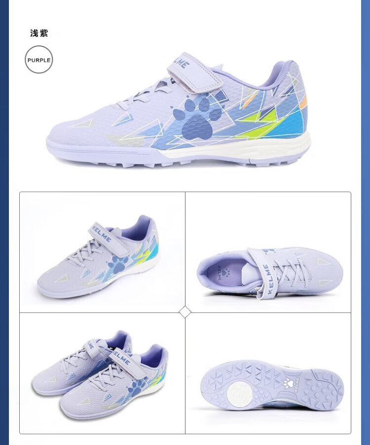 KELME football shoes for youth TF nails game sneakers breathable student anti-slip wear-resistant football shoes light purple 34