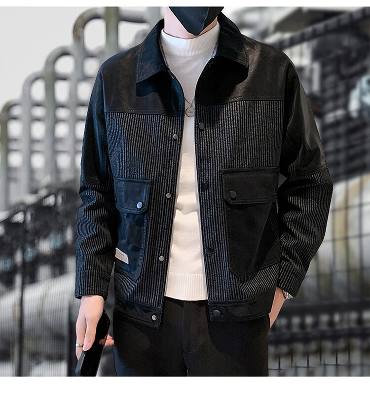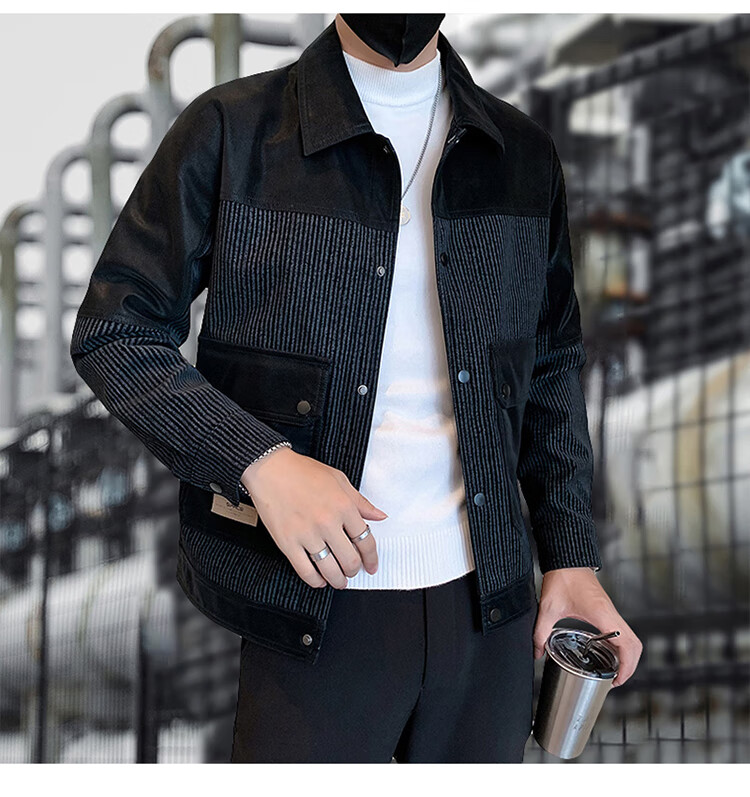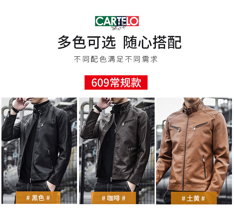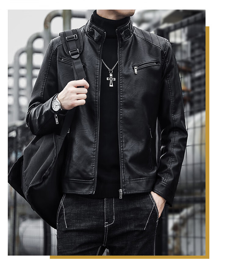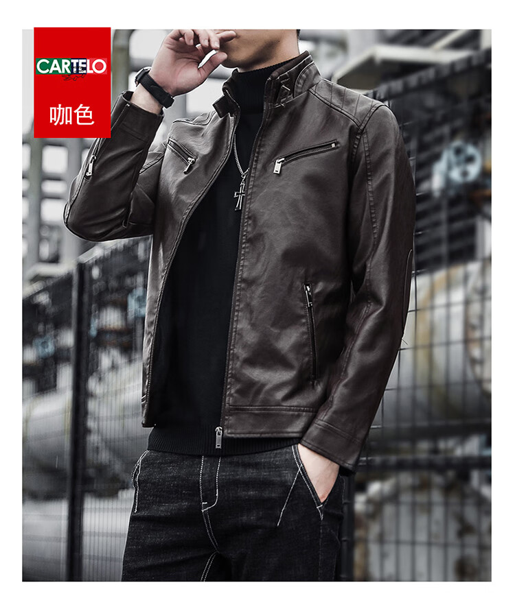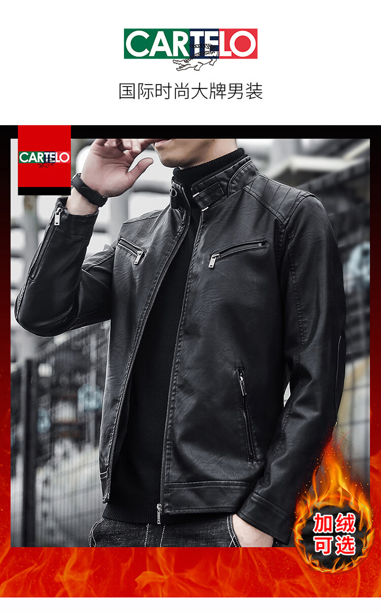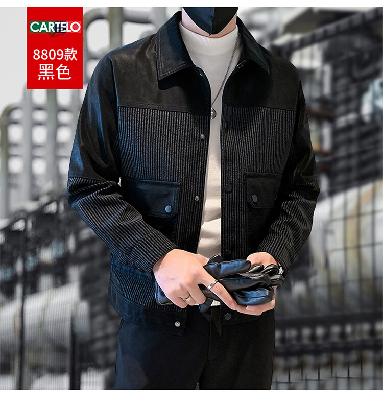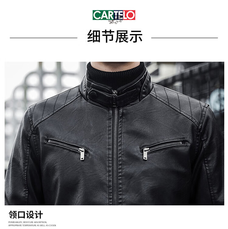 CARTELO crocodile leather jacket men's work jacket men's autumn and winter jacket men's casual handsome motorcycle men's black XL