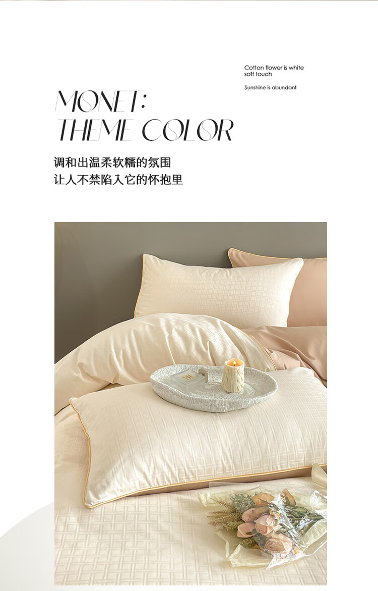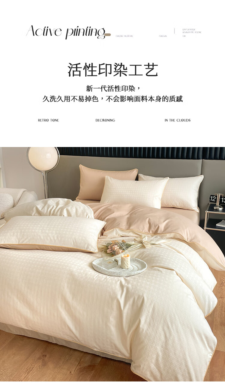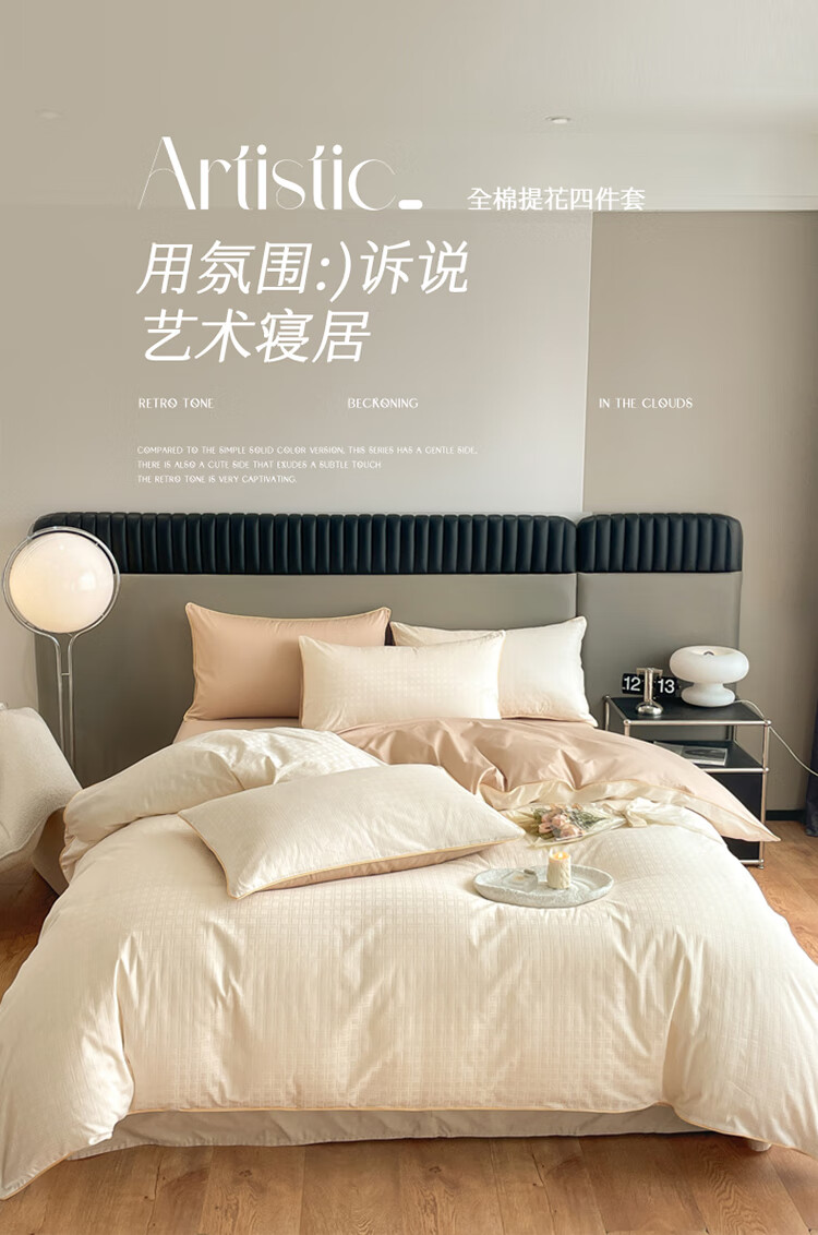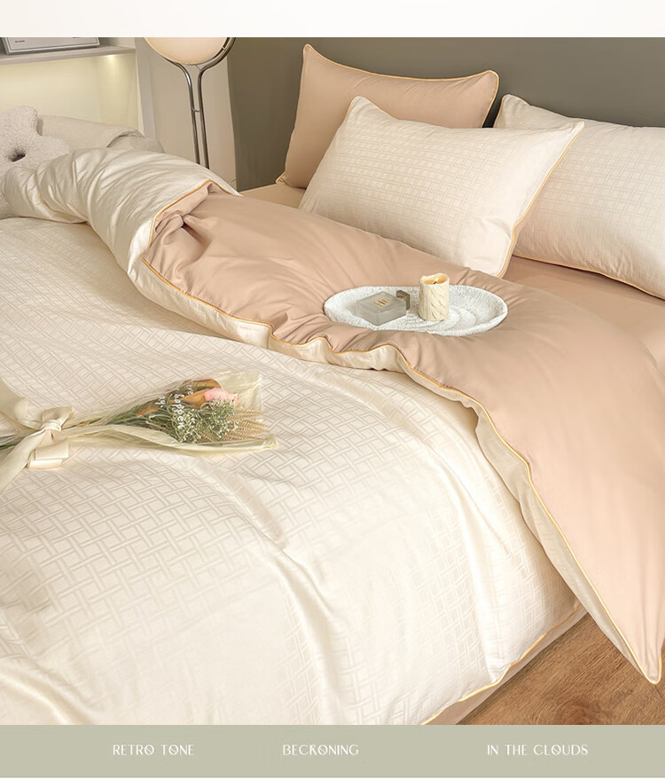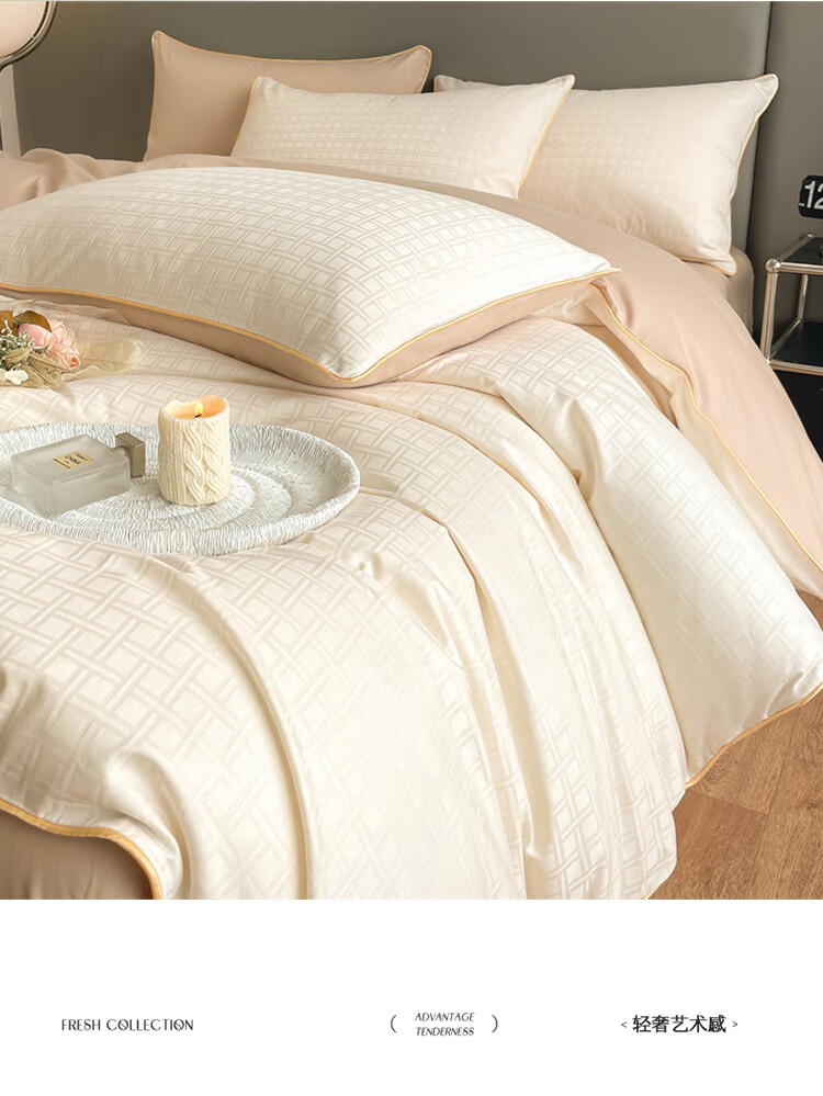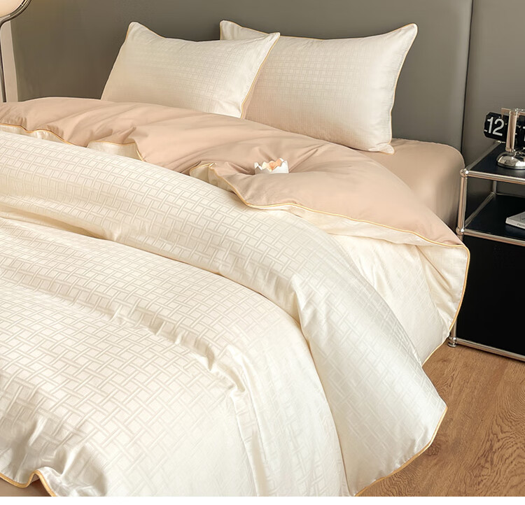I-WILL light luxury jacquard four-piece set pure cotton 100 simple quilt cover bedding milkshake white-milk tea 1.5/1.8 meters