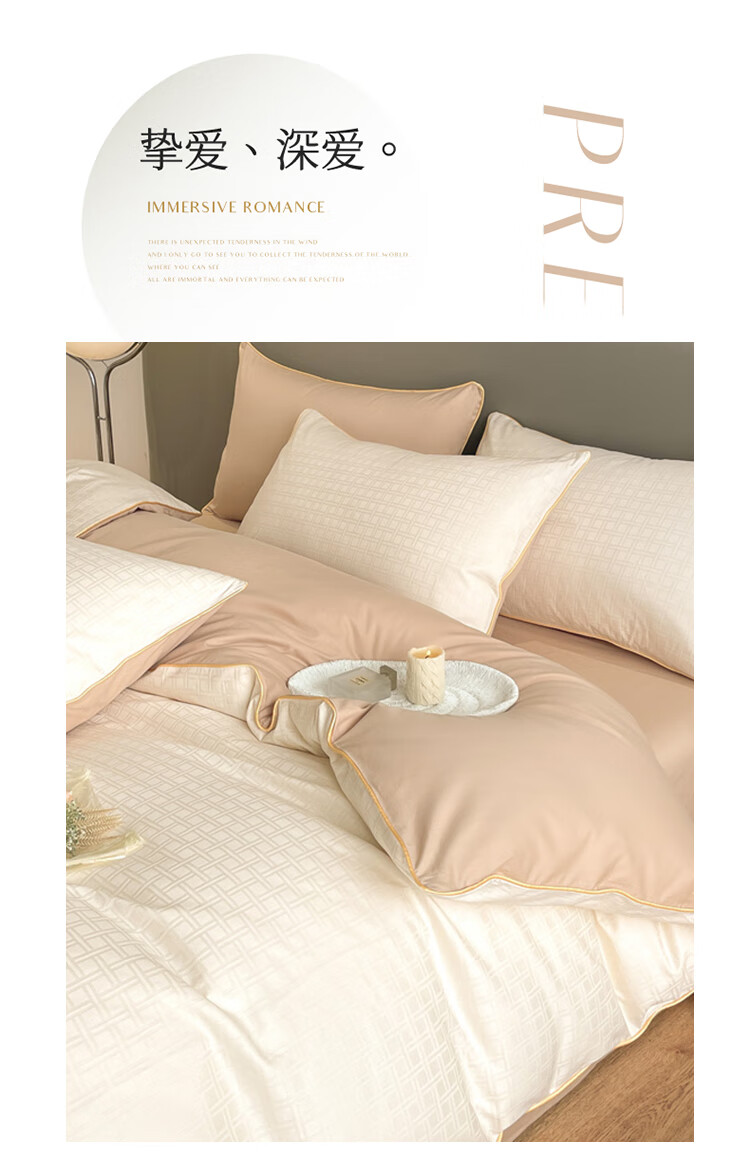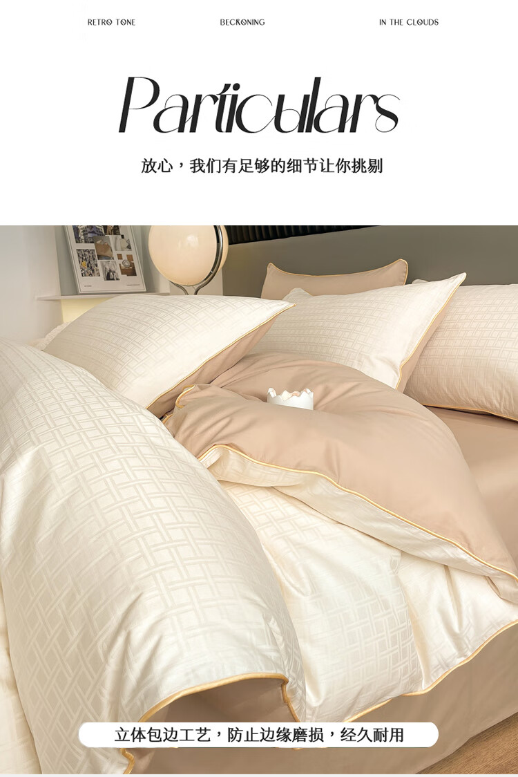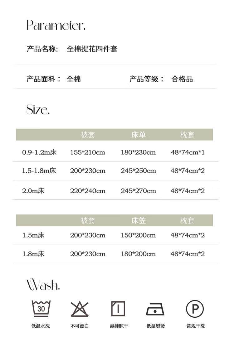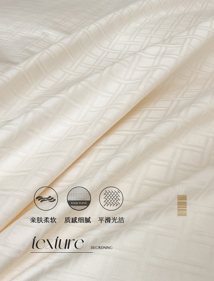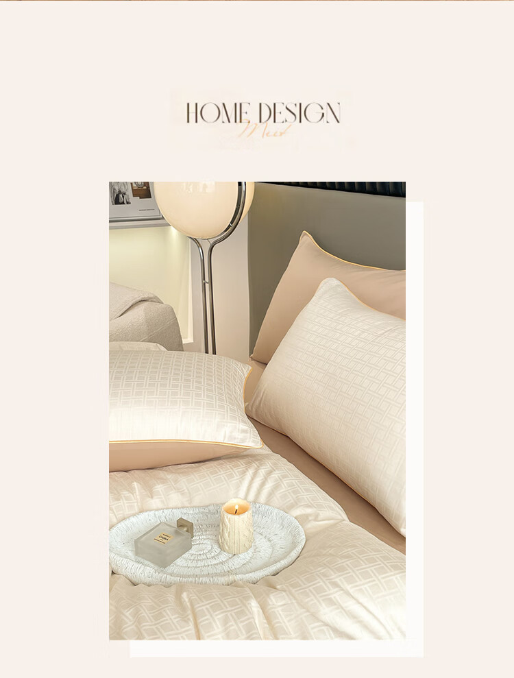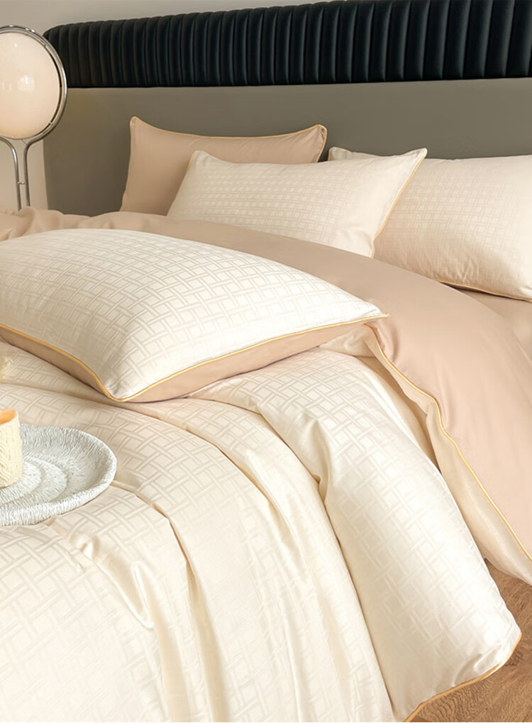 I-WILL light luxury jacquard four-piece set pure cotton 100 simple quilt cover bedding milkshake white-milk tea 1.5/1.8 meters