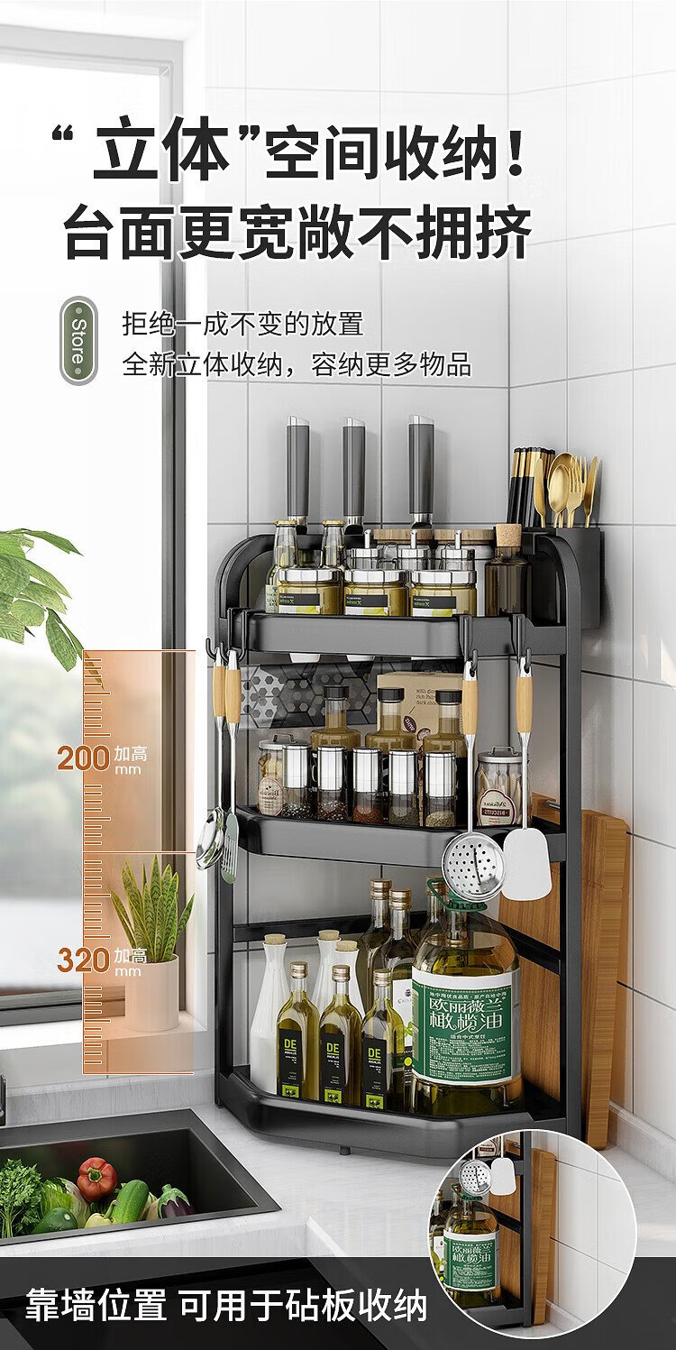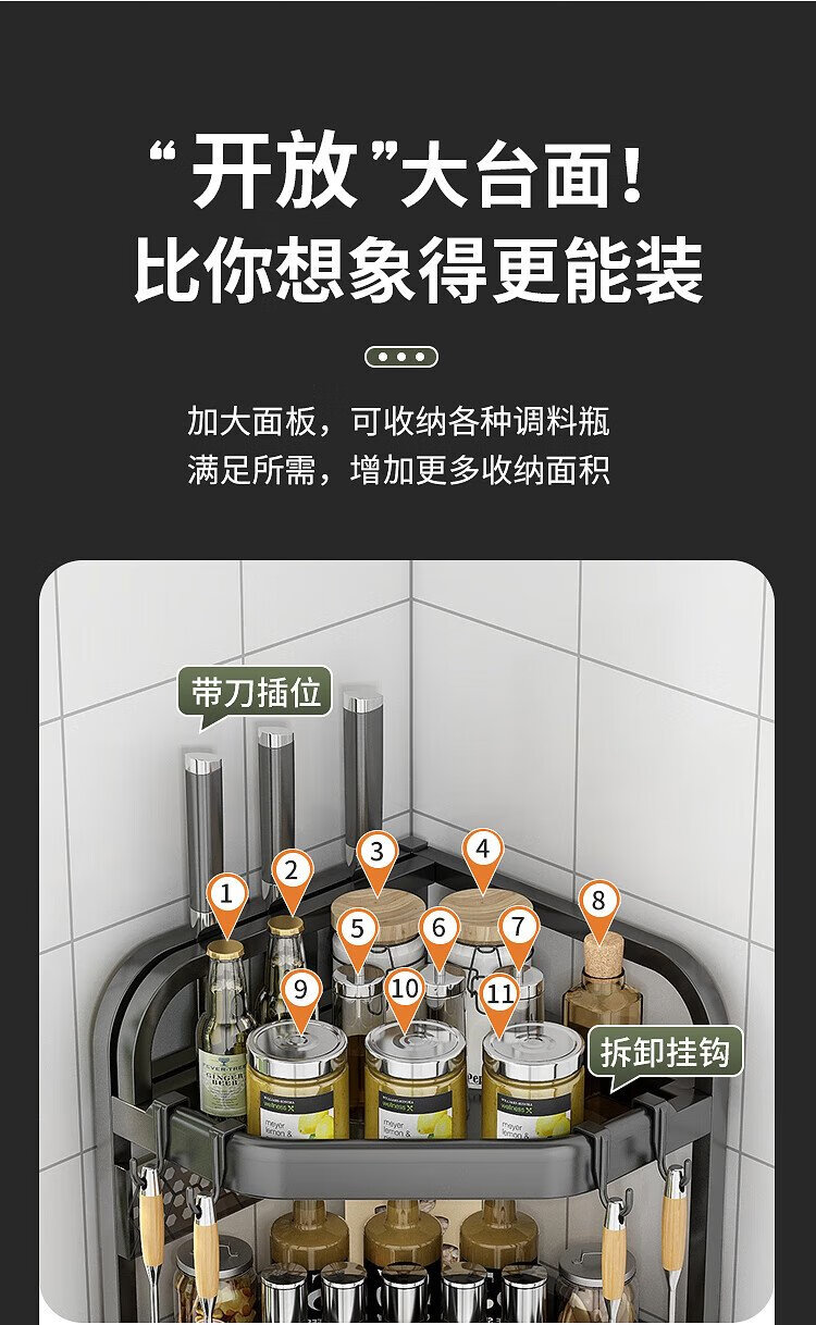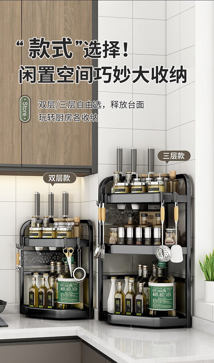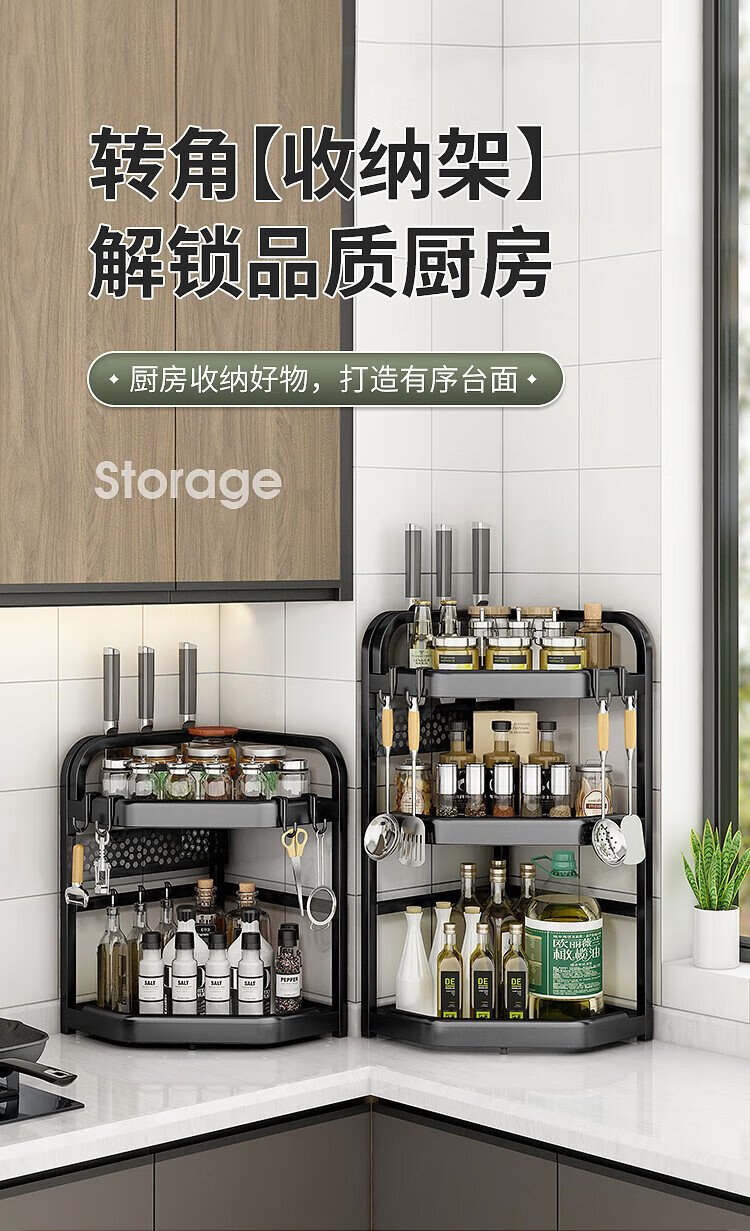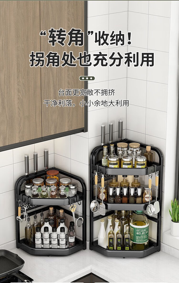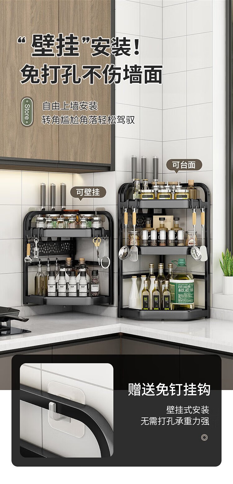 Jiuqiangu Corner Condiment Rack Condiment Rack Condiment Bottle Box Hook Large Capacity Countertop Storage Basket 6370