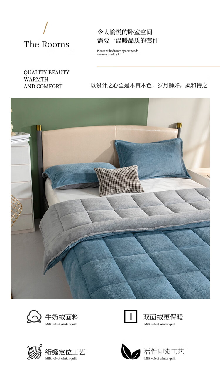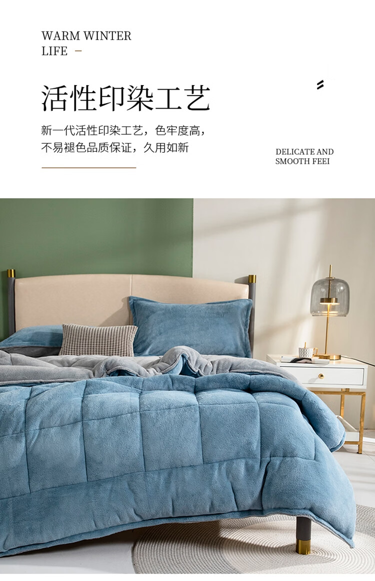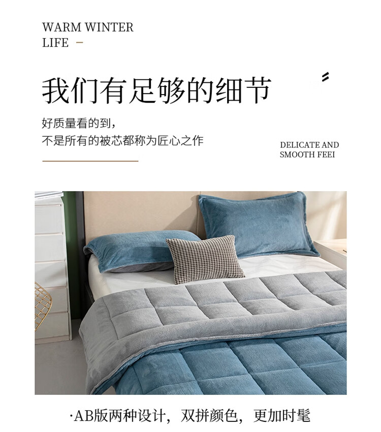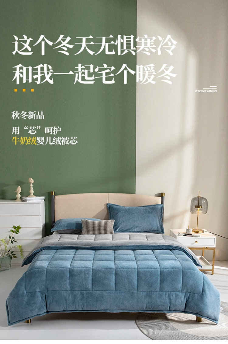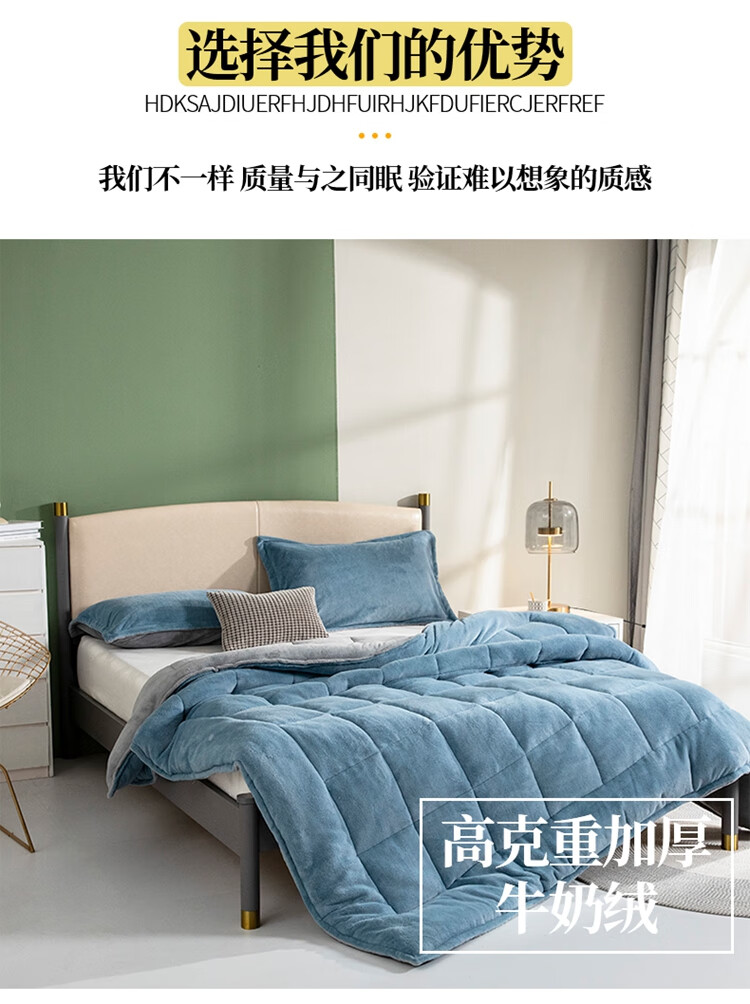 I-WILL milk velvet winter quilt flannel quilt core thickened winter single fiber quilt blue gray 200x230cm 8Jin Jin equals 0.5 kg