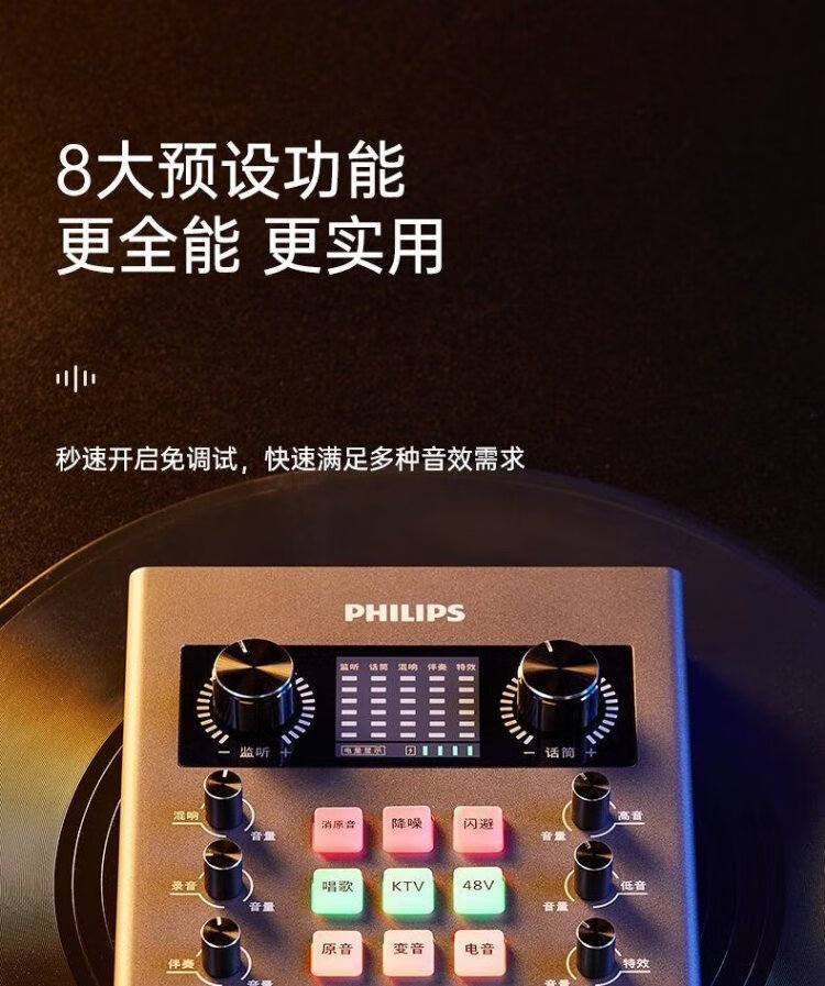 Philips newly upgraded 48V mobile phone and computer Bluetooth accompaniment live sound card equipment universal external sound card live recording Philips 3025C+iSKSM58 one-to-one set