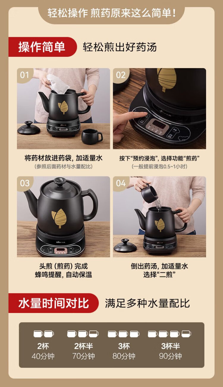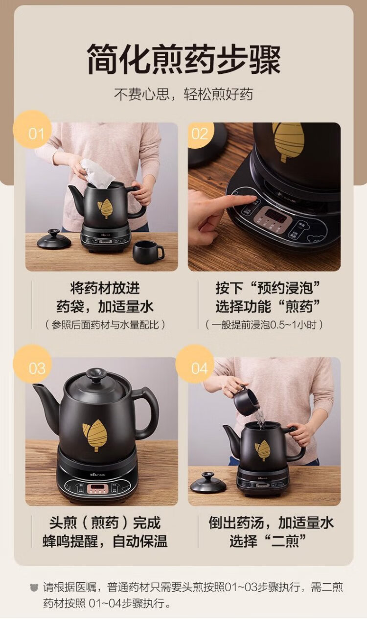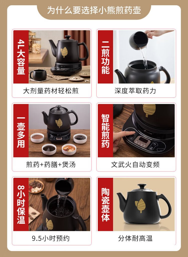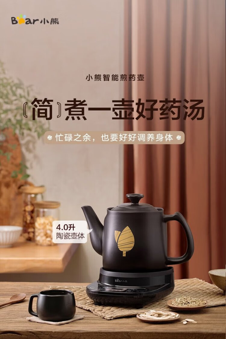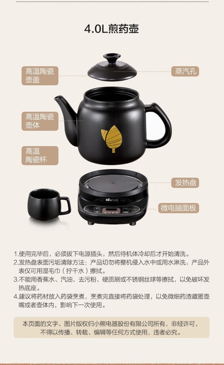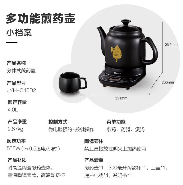 Bear (Bear) Chinese Medicine Pot, Fully Automatic 4L Large Capacity Split Ceramic Electric Medicine Pot, Chinese Medicine Pot, Medicine Pot, Medicine Pot, Electric Casserole JYH-C40D2