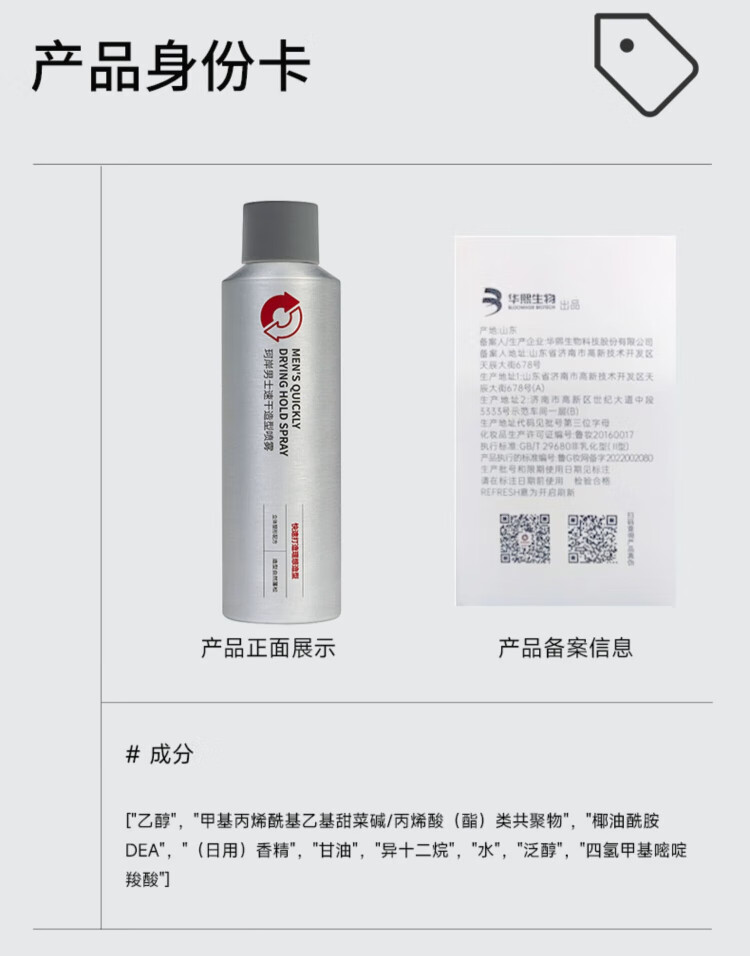 Ke'an Huaxi Bio Hairspray Men's Quick-Drying Styling Gel Fluffy Styling Spray No White Flake 200ml