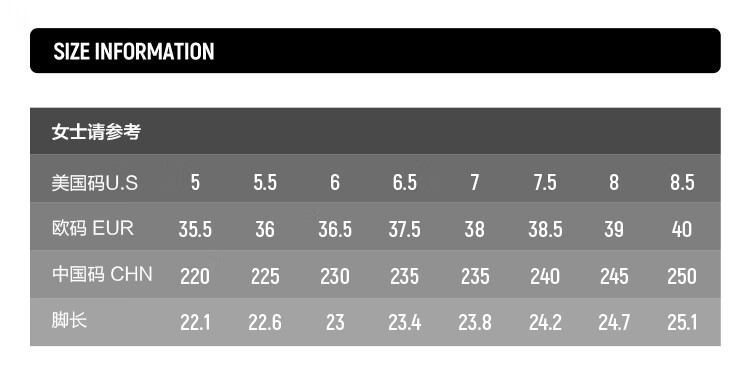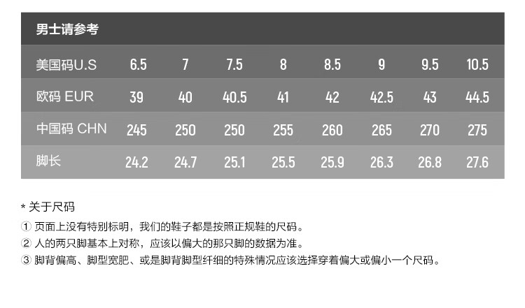 China (cm) 36 - 37 38 - 39 40 - 42 43 - 44 45 - 47