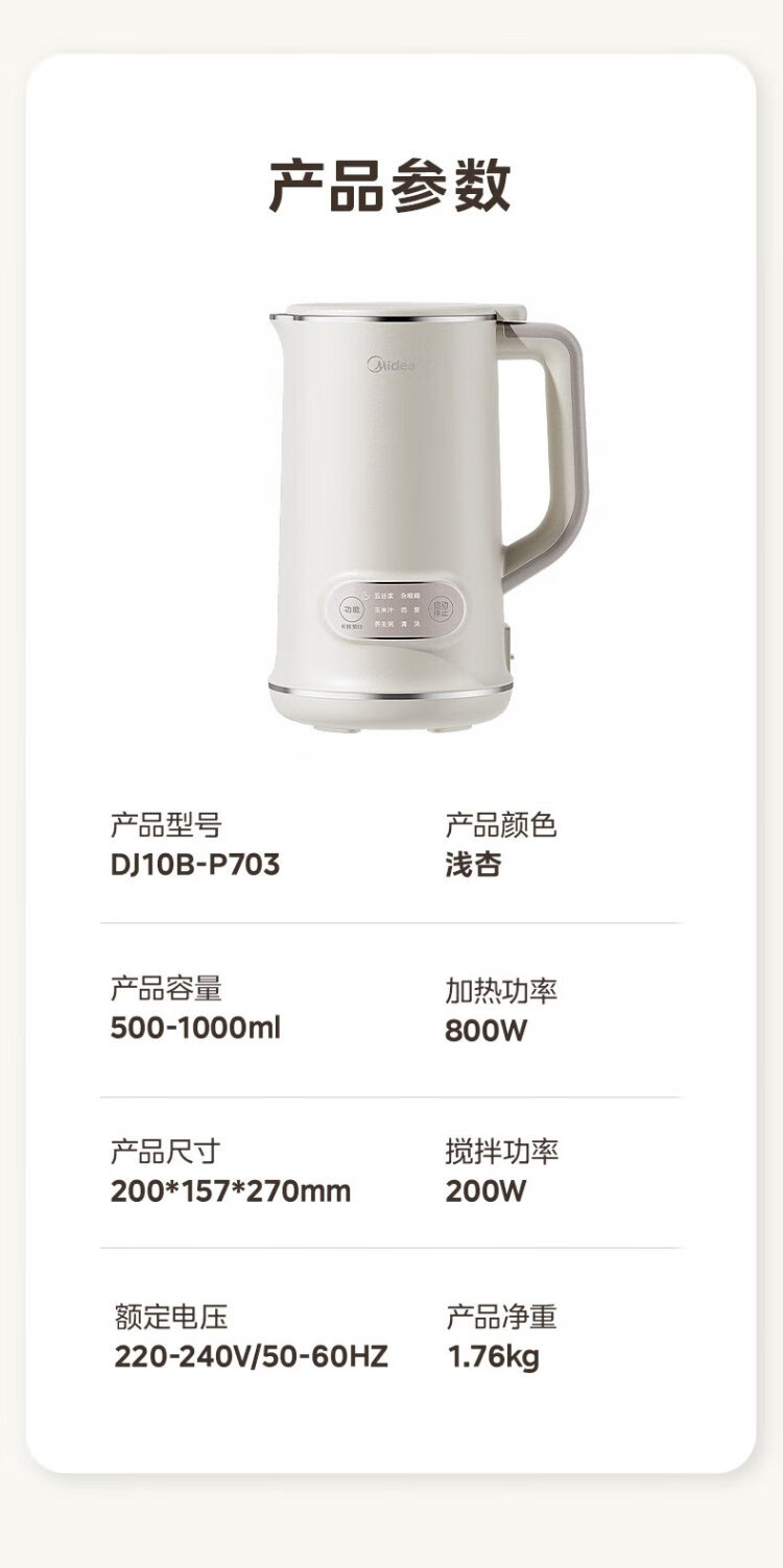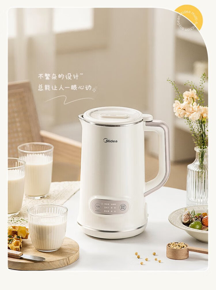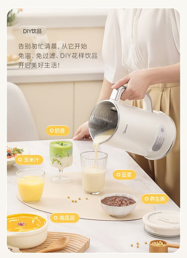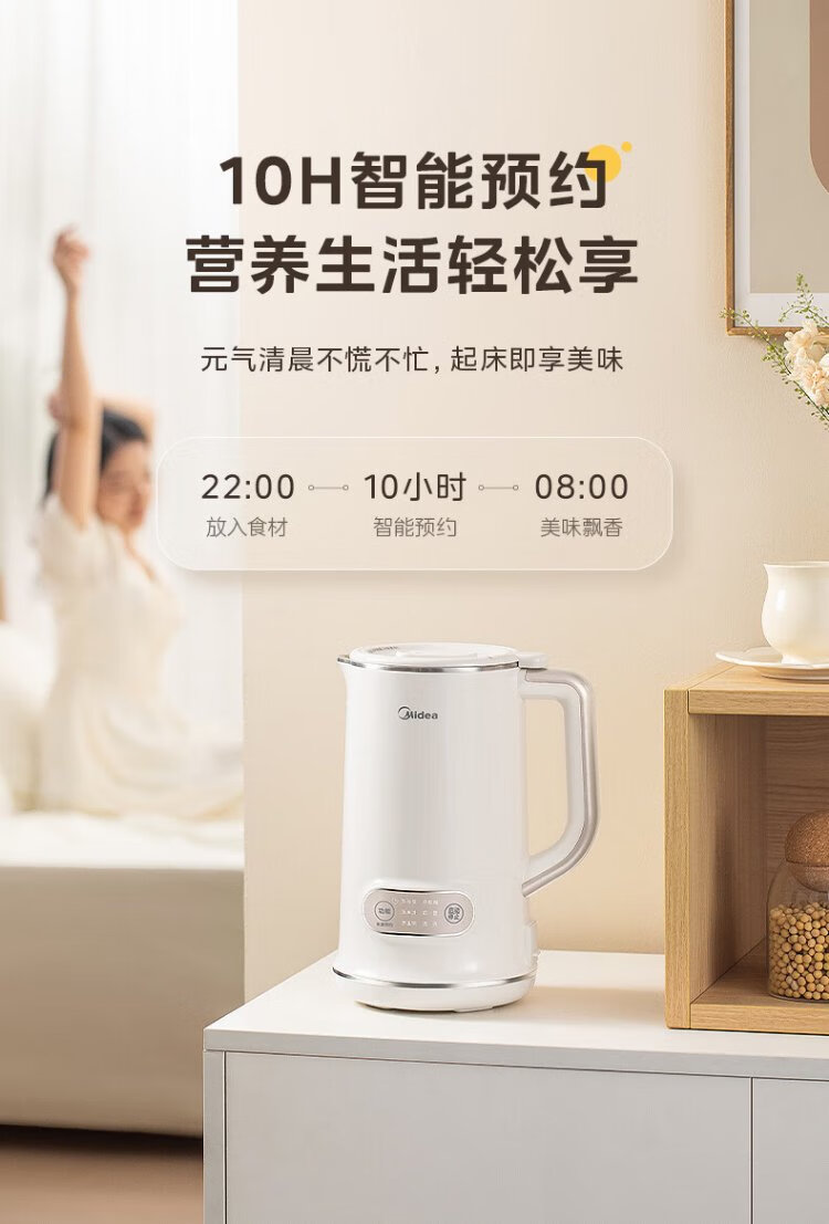 Midea Soybean Milk Maker 1L Capacity 2-4 People Fully Automatic Household Small No-cook No-Filter Food Supplementary Machine One-click Cleaning and Self-washing Multifunctional Cooking Wall Breaker Soybean Milk Maker DJ10B-P703