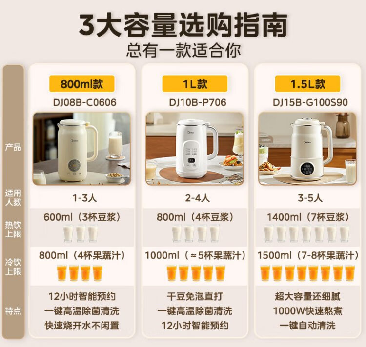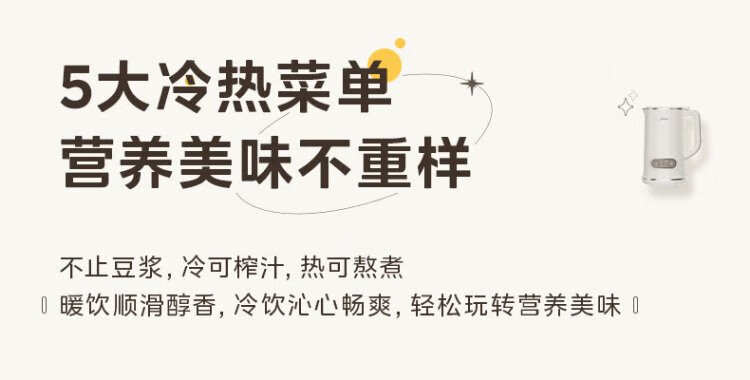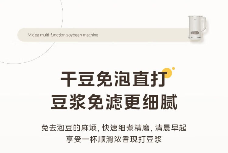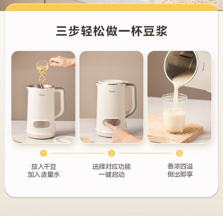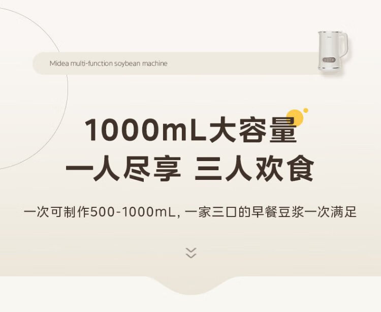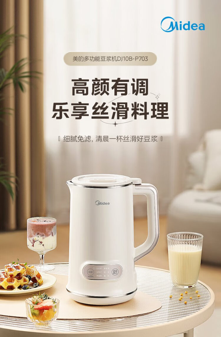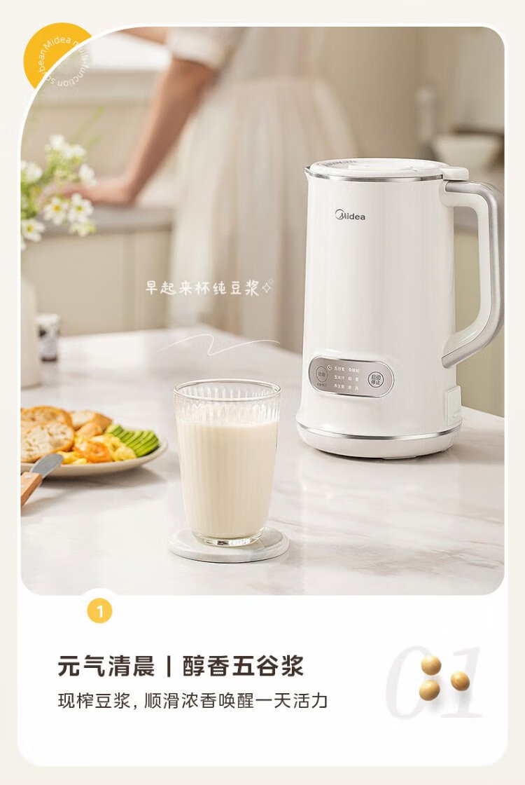 Midea Soybean Milk Maker 1L Capacity 2-4 People Fully Automatic Household Small No-cook No-Filter Food Supplementary Machine One-click Cleaning and Self-washing Multifunctional Cooking Wall Breaker Soybean Milk Maker DJ10B-P703
